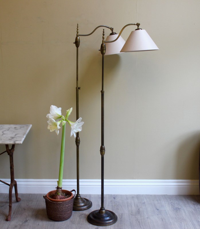 Pair Of 1950S French Adjustble Height Dark Brass Floor Lamps