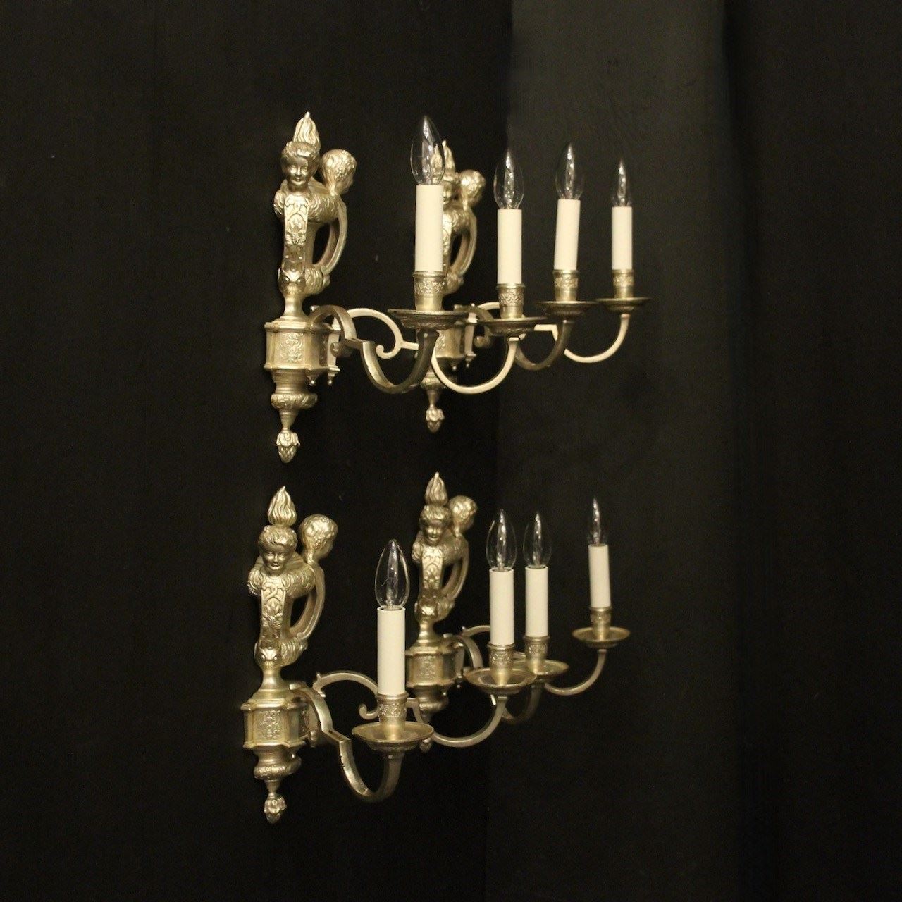 English Silver Plated Cherub Antique Wall Lights