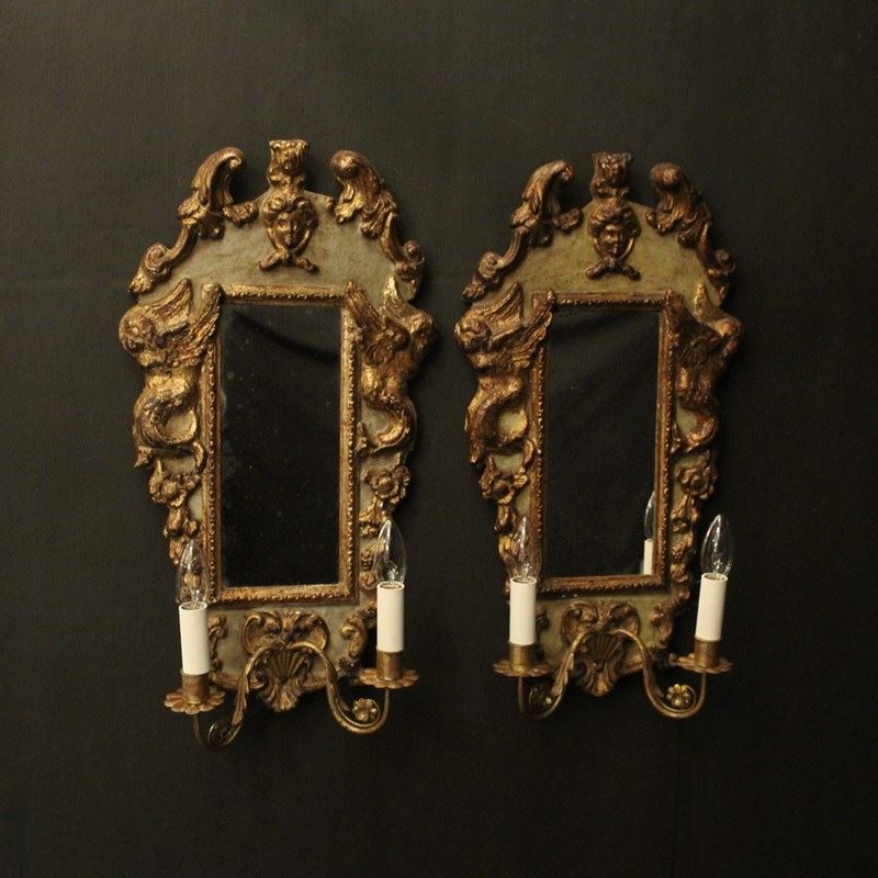 Florentine Pair Of Giltwood Antique Girandoles