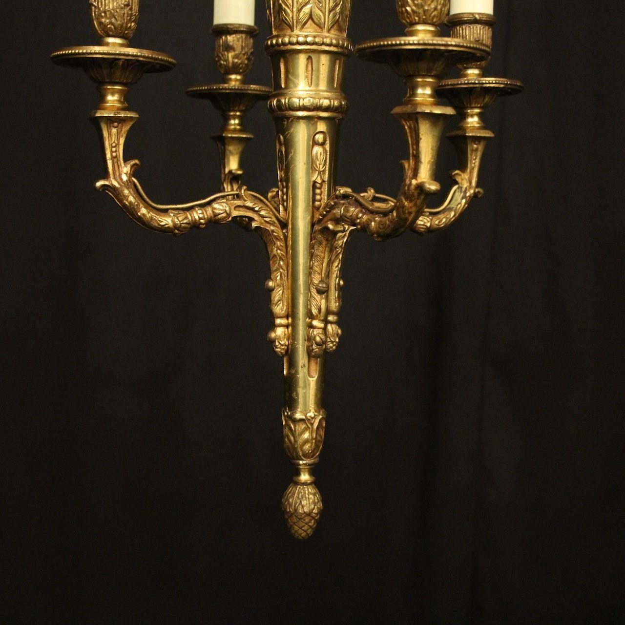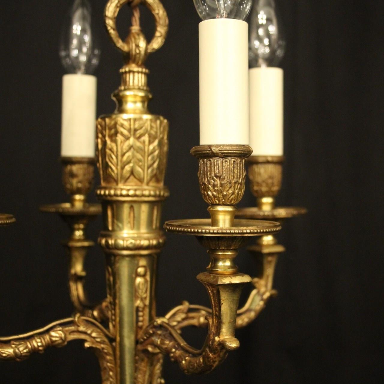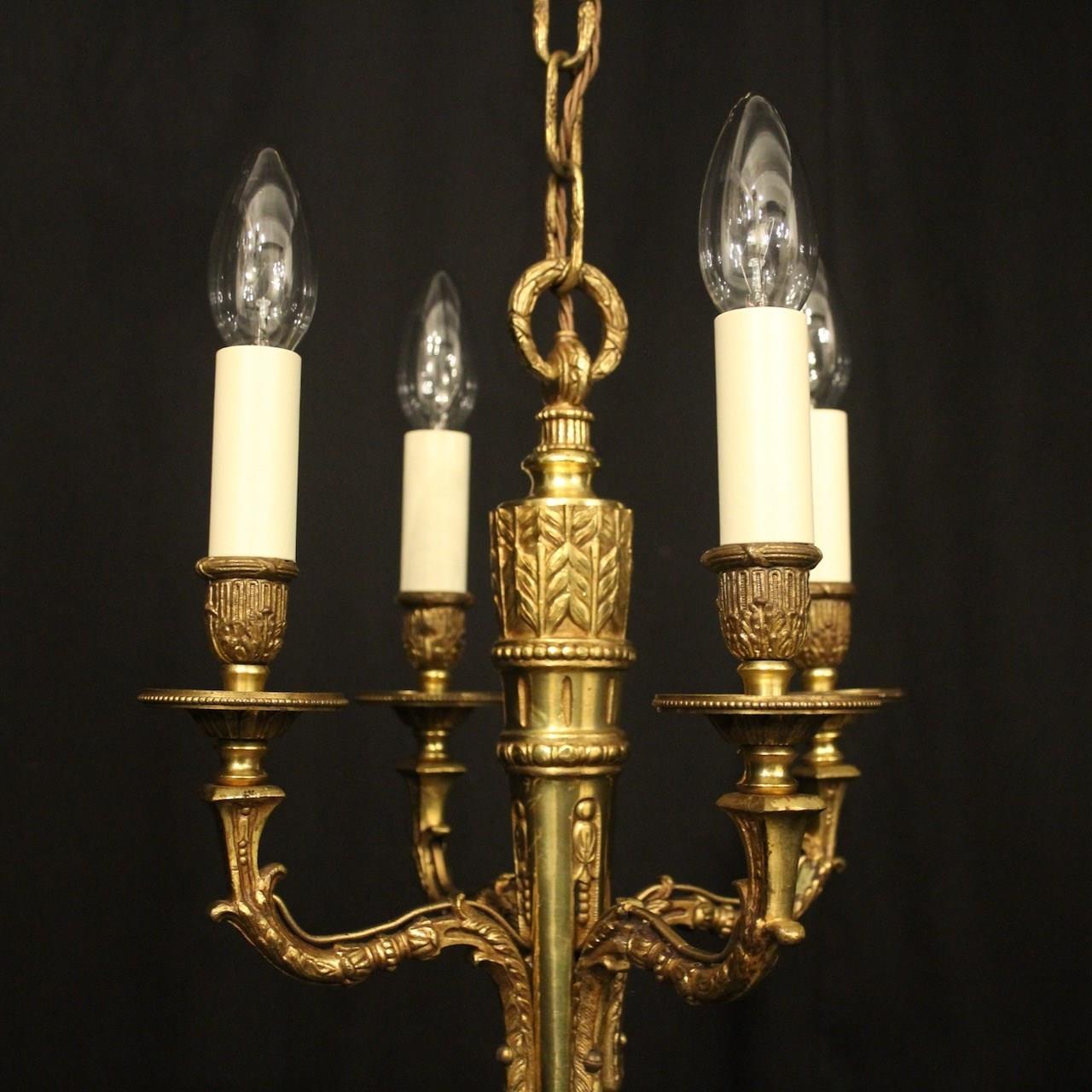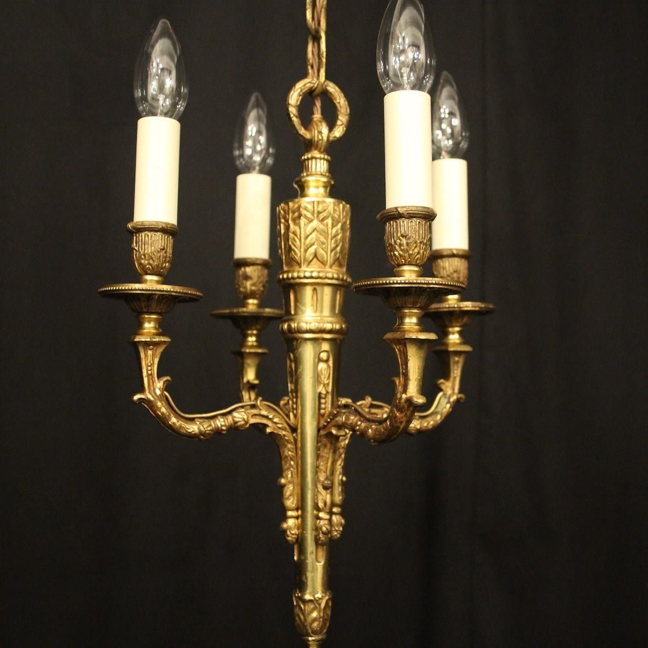 French Gilded Brass 4 Light Antique Chandelier