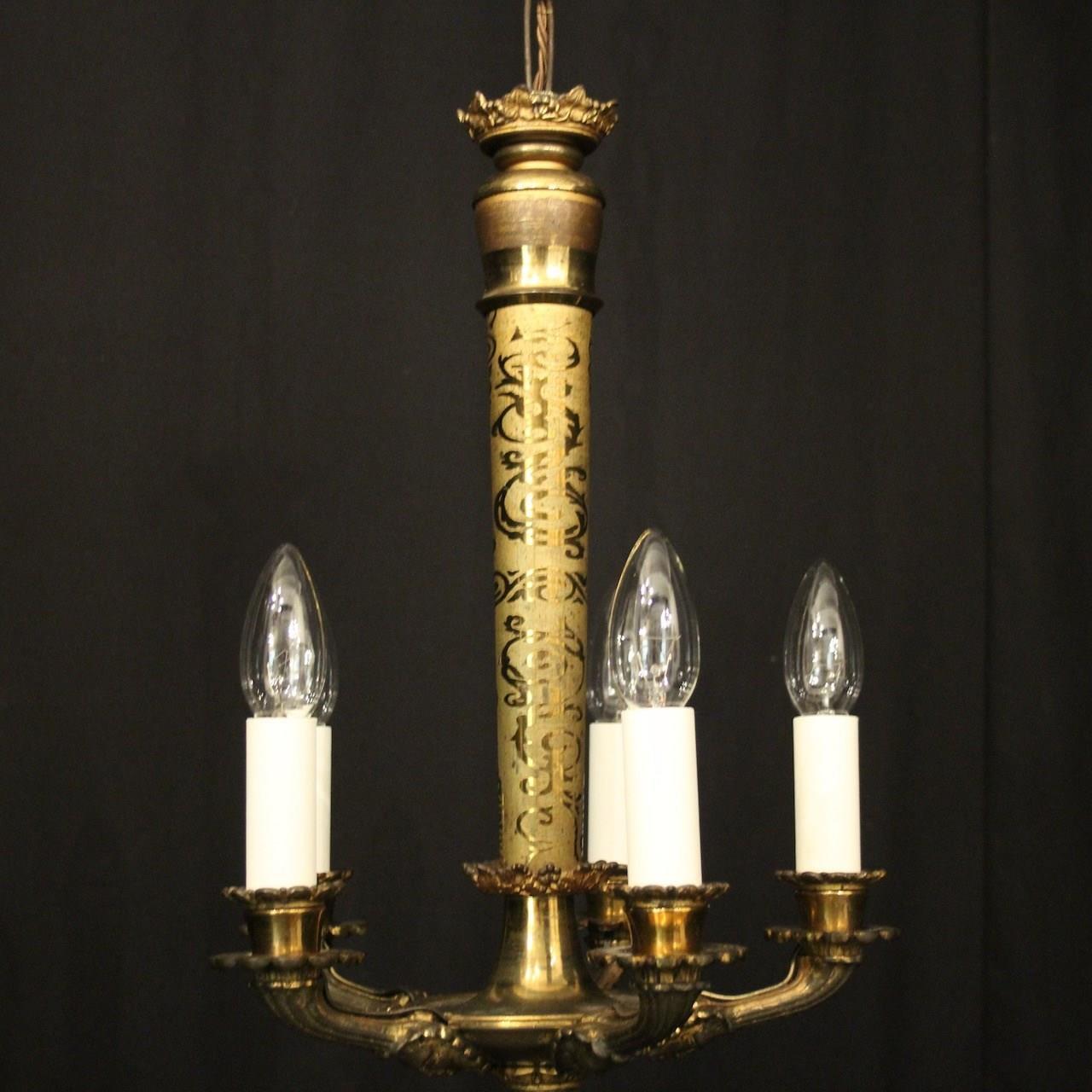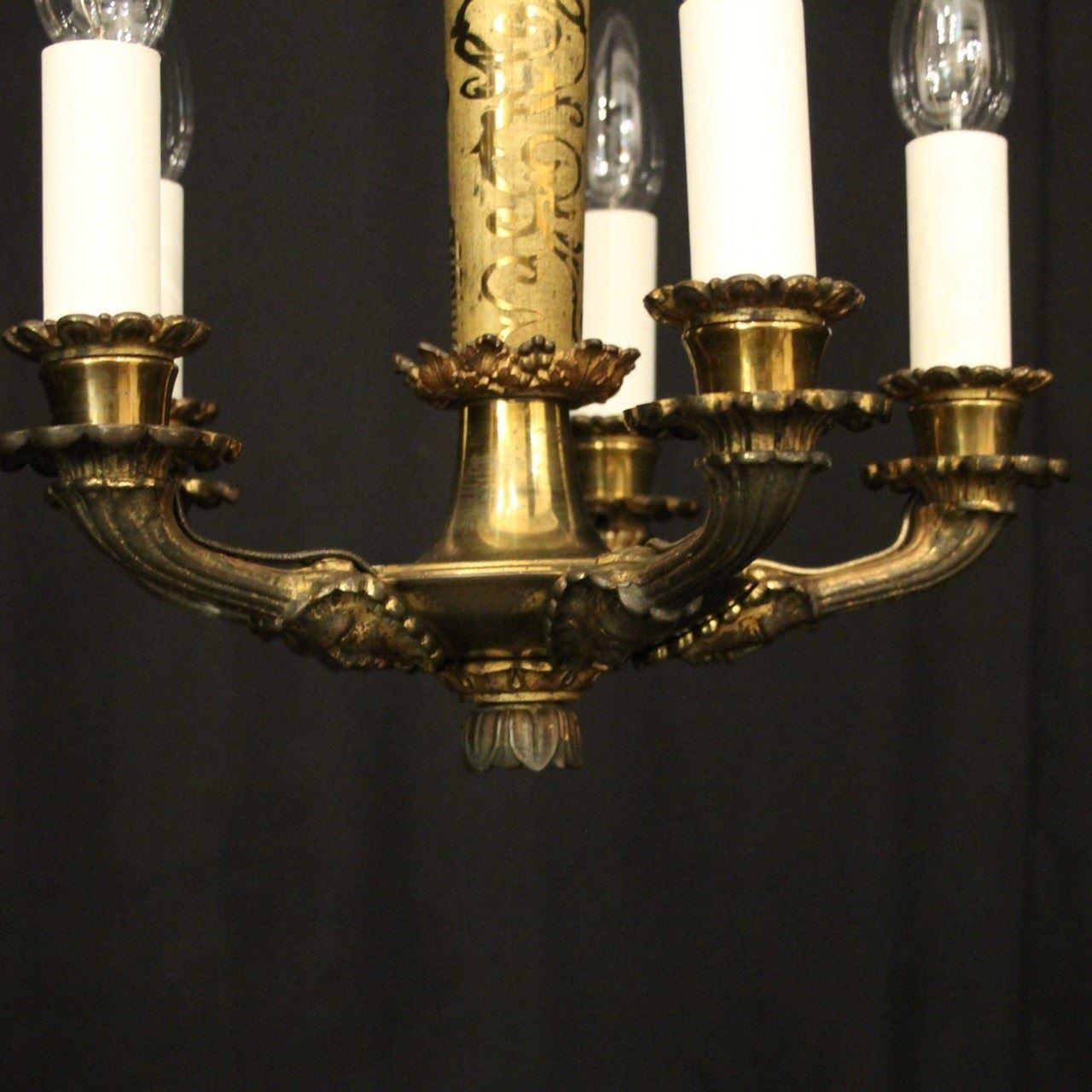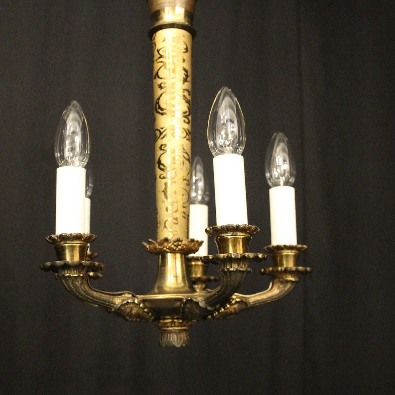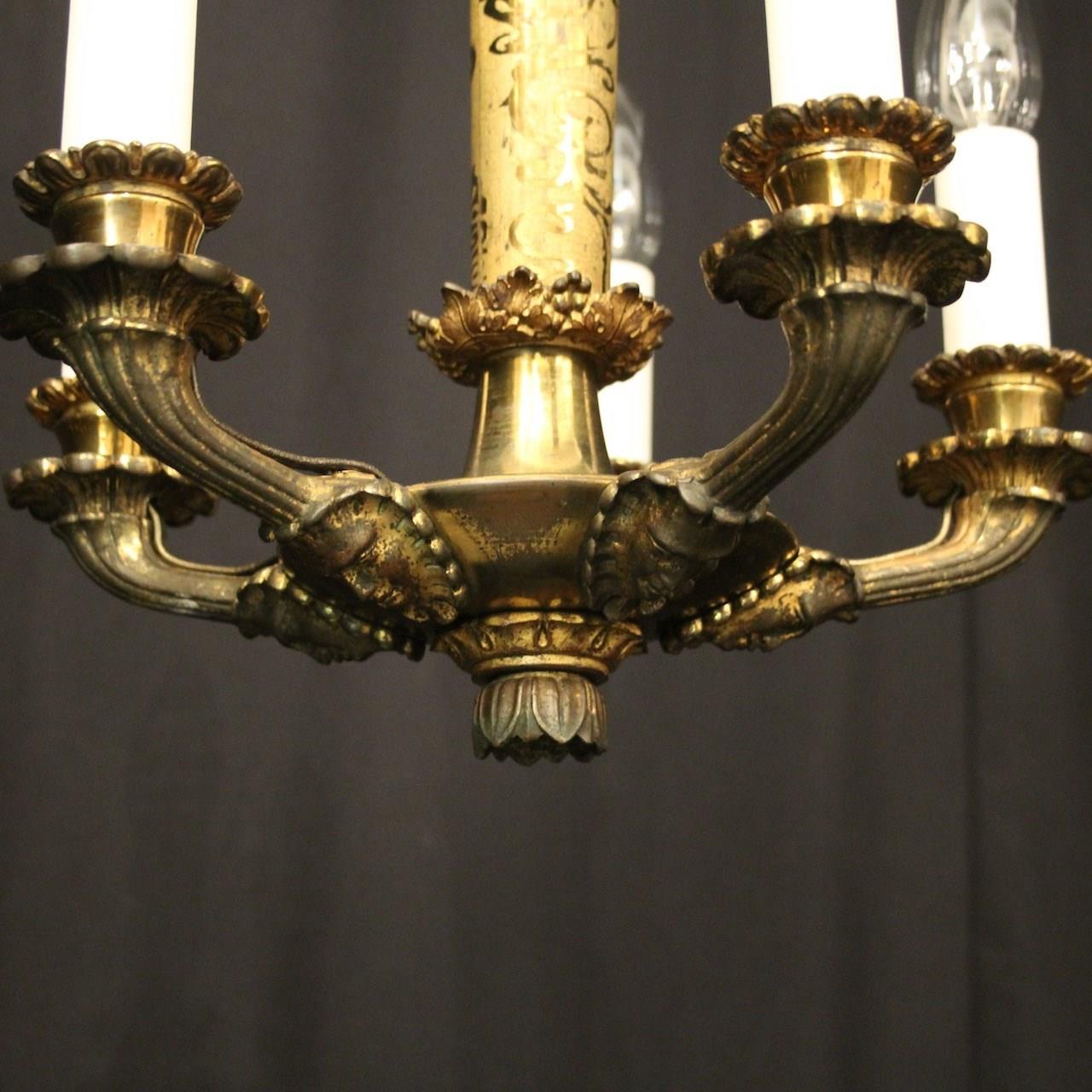 French Gilded Bronze 5 Light Antique Chandelier