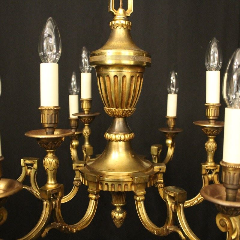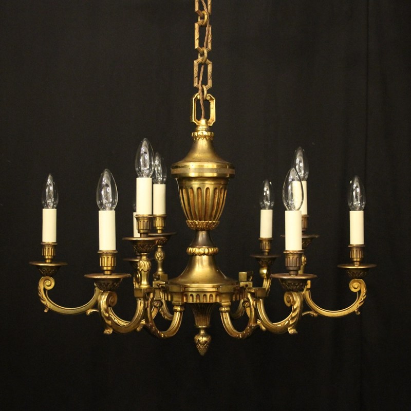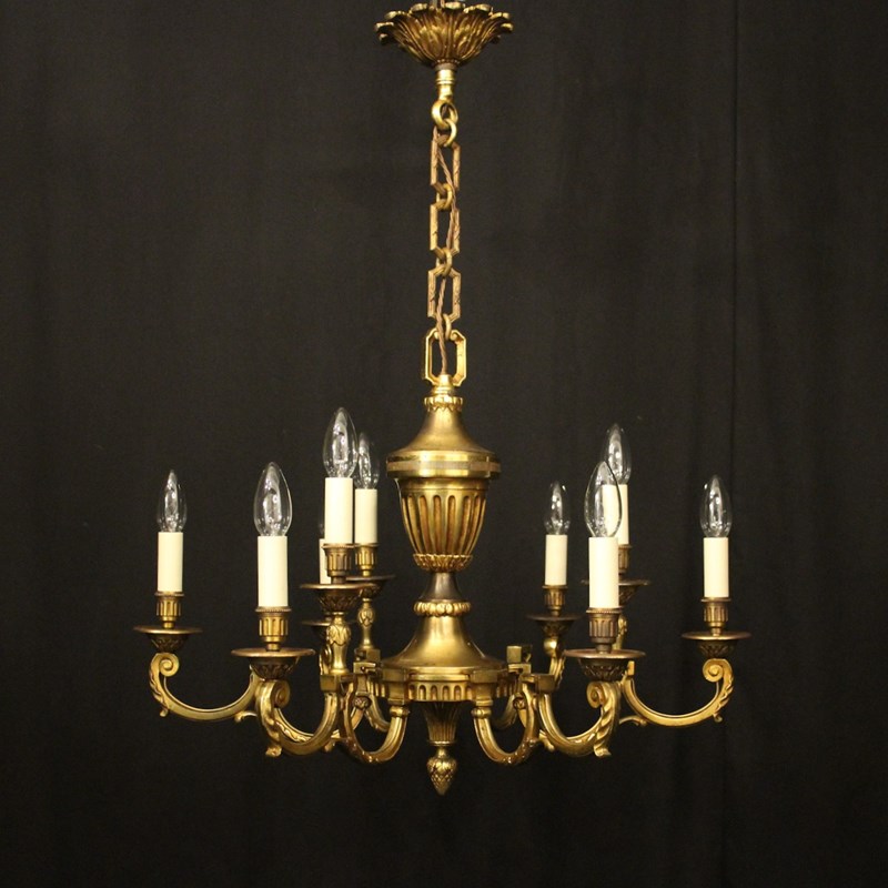 French Gilded Bronze 9 Light Antique Chandelier