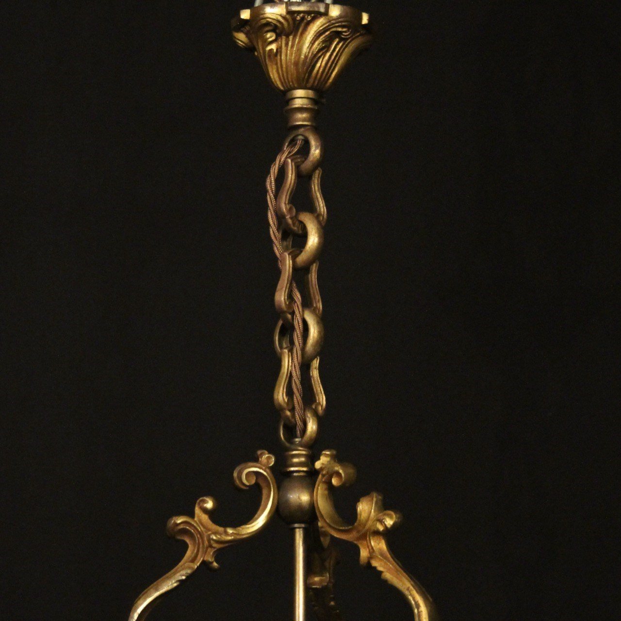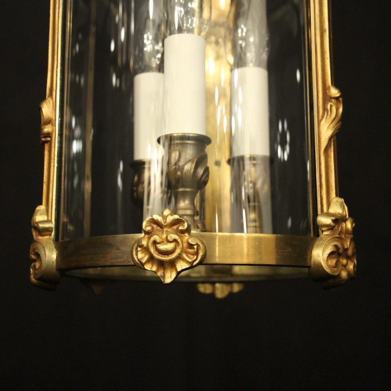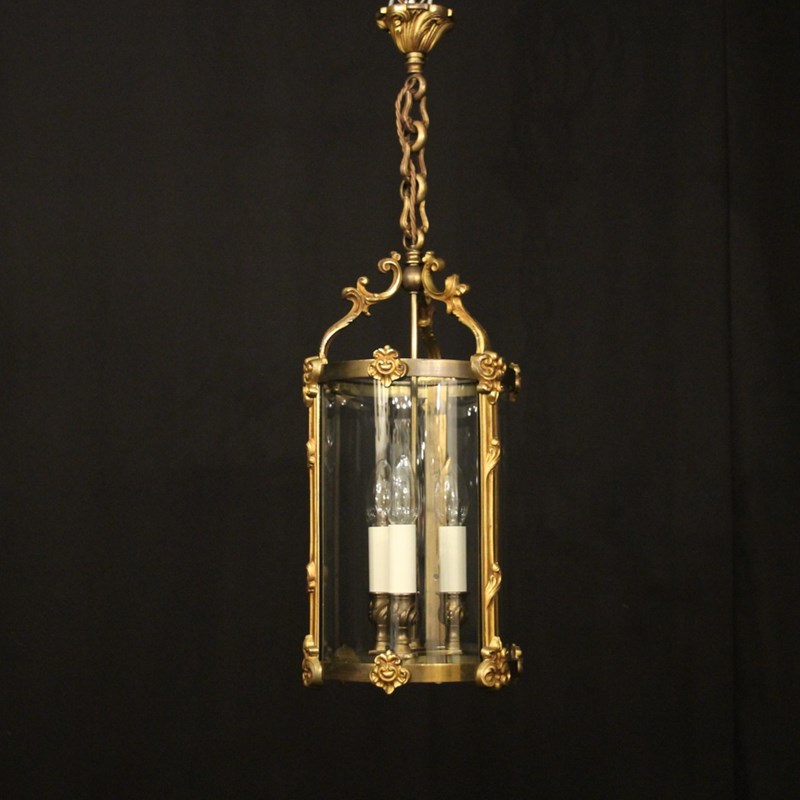 French Gilded Bronze Antique Hall Lantern