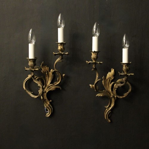 French Pair Of Bronze Antique Wall Sconces