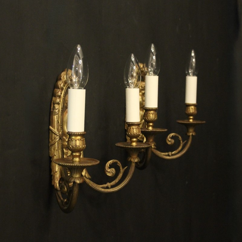 French Pair Of Gilded Antique Wall Lights