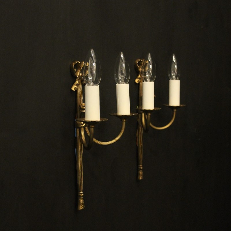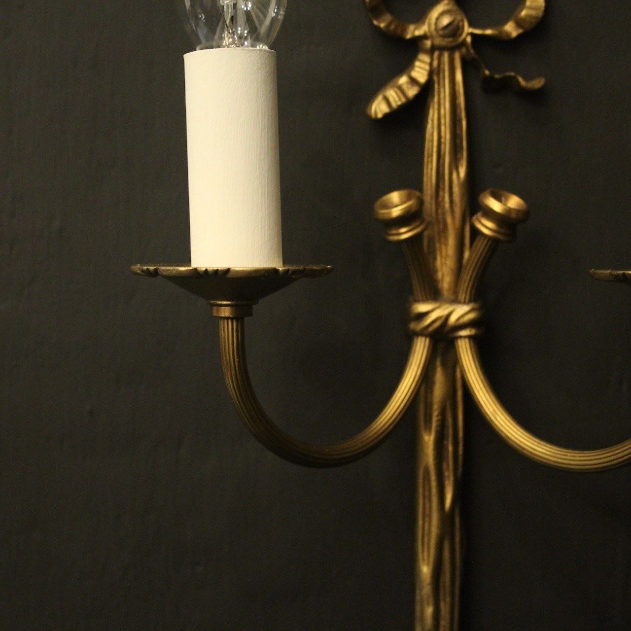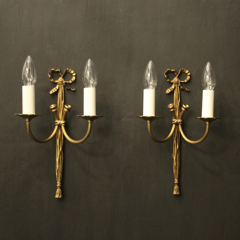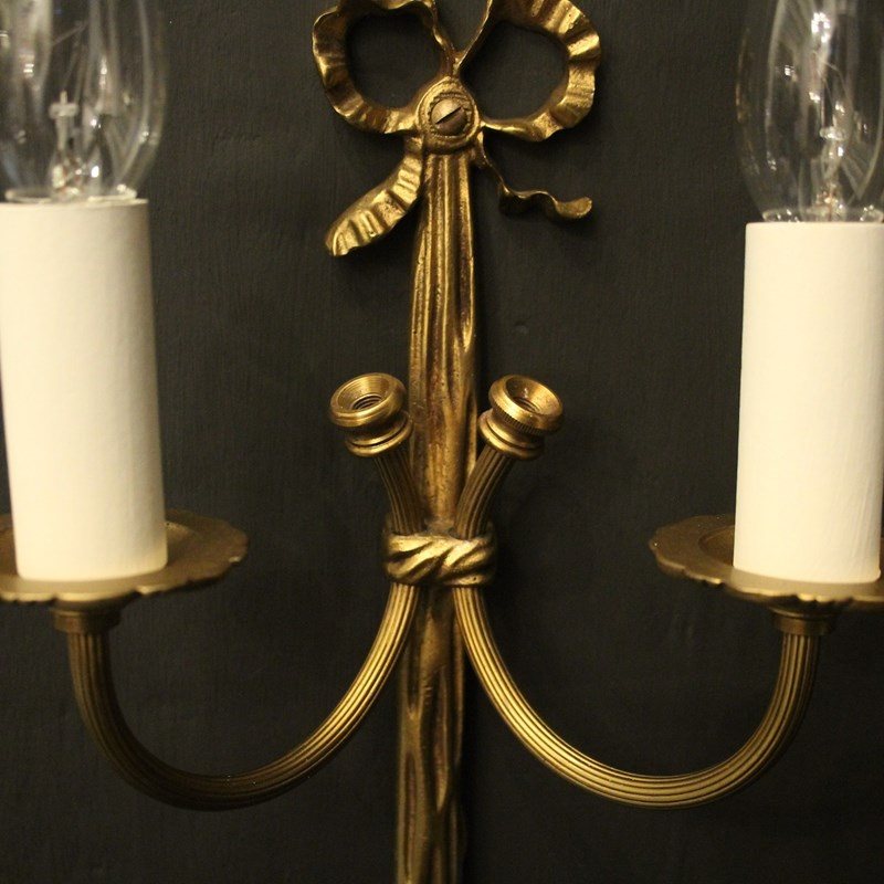 French Pair Of Gilded Brass Ribbon Wall Lights