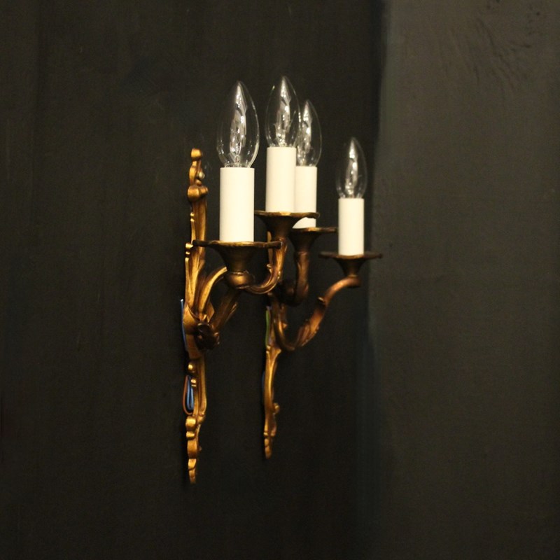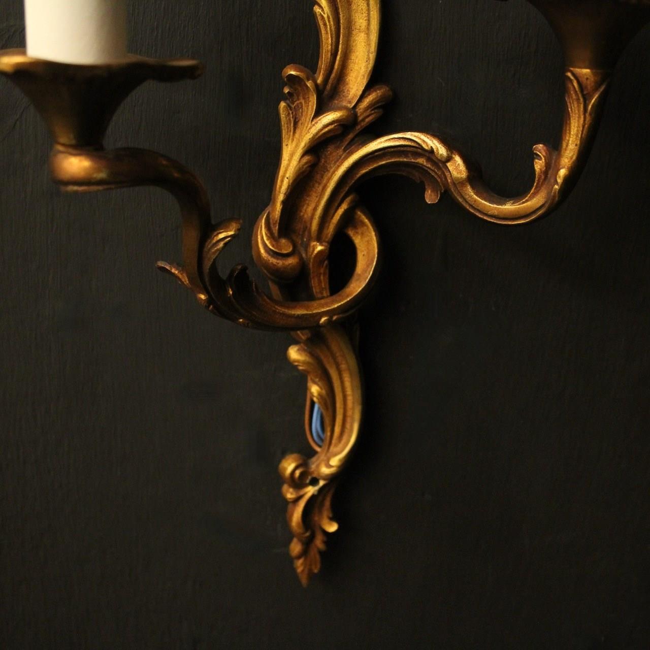 French Pair Of Gilded Bronze Antique Wall Lights