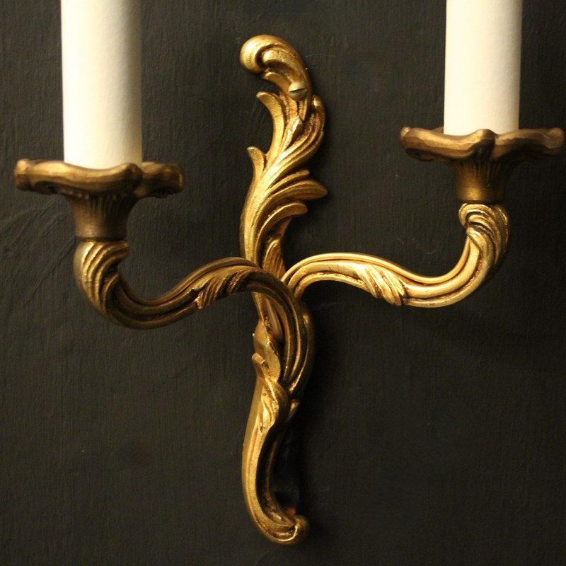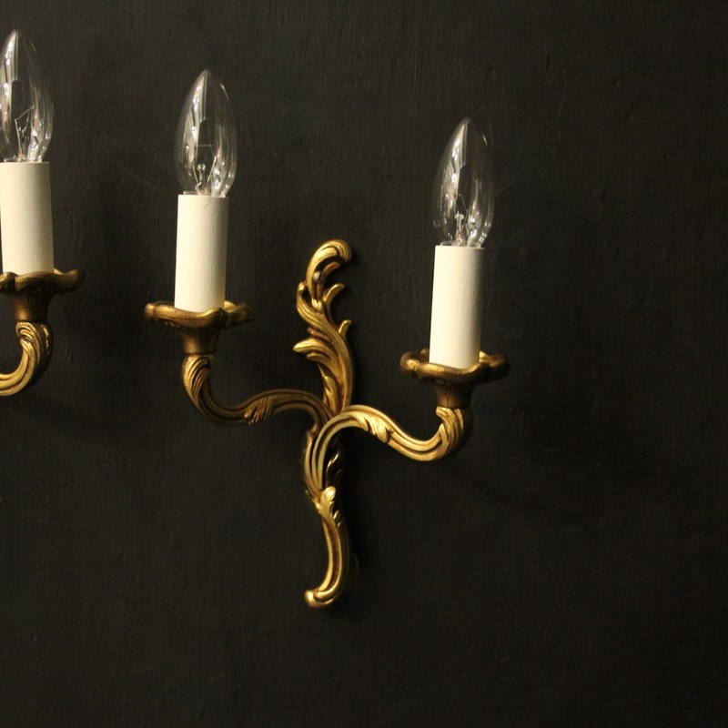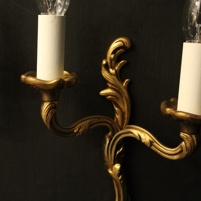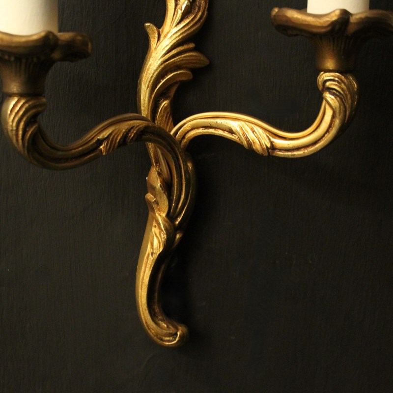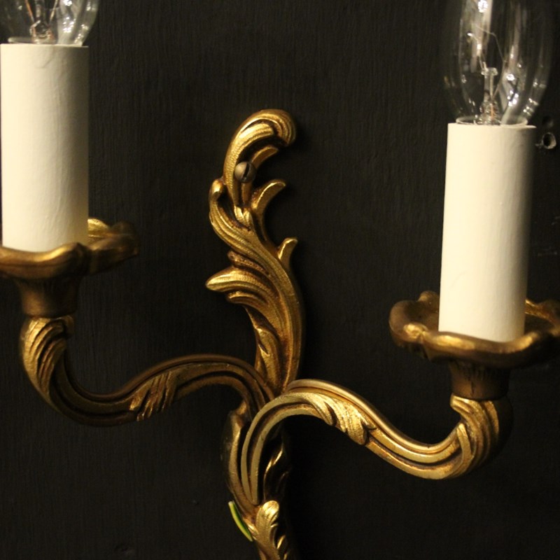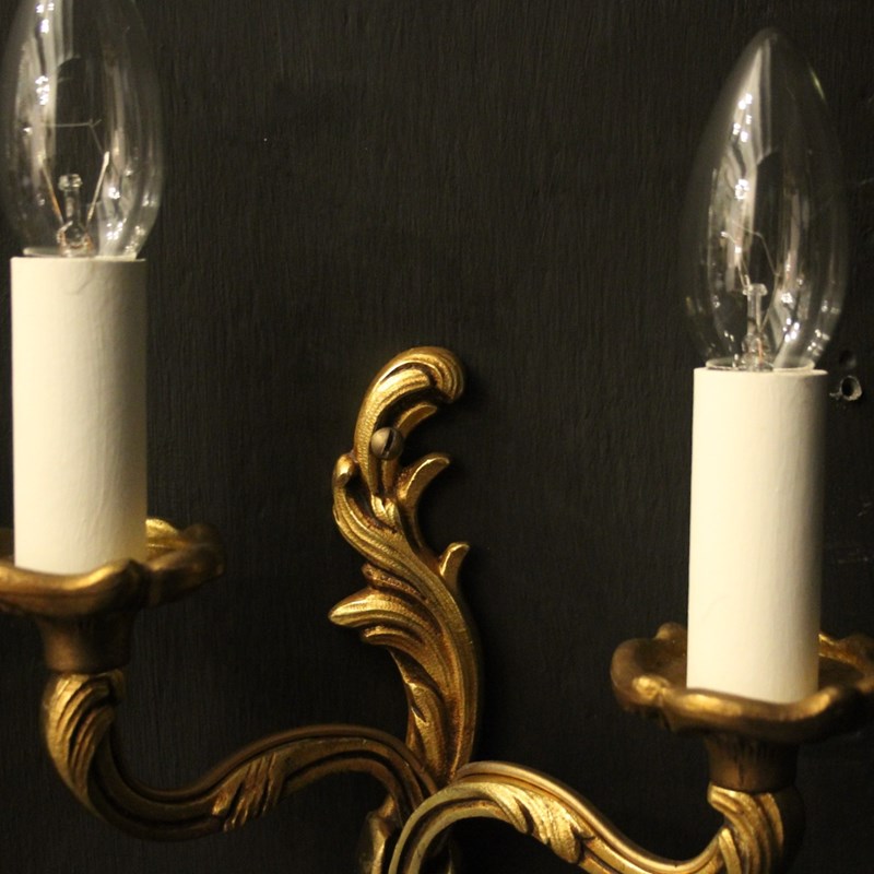 French Pair Of Gilded Twin Arm Wall Lights