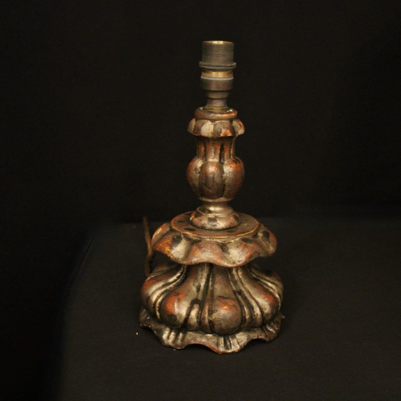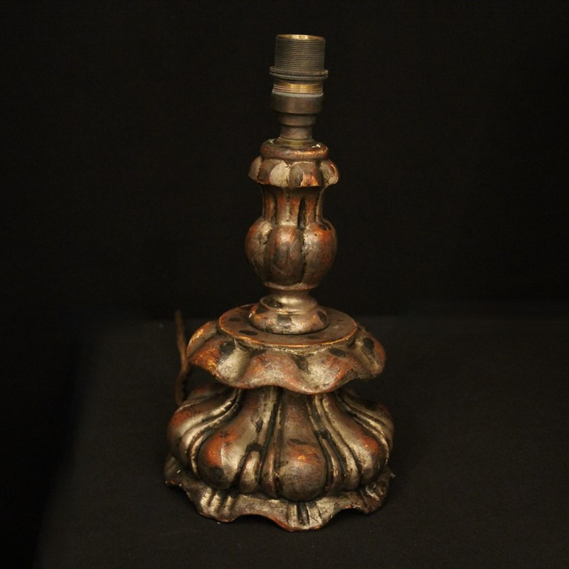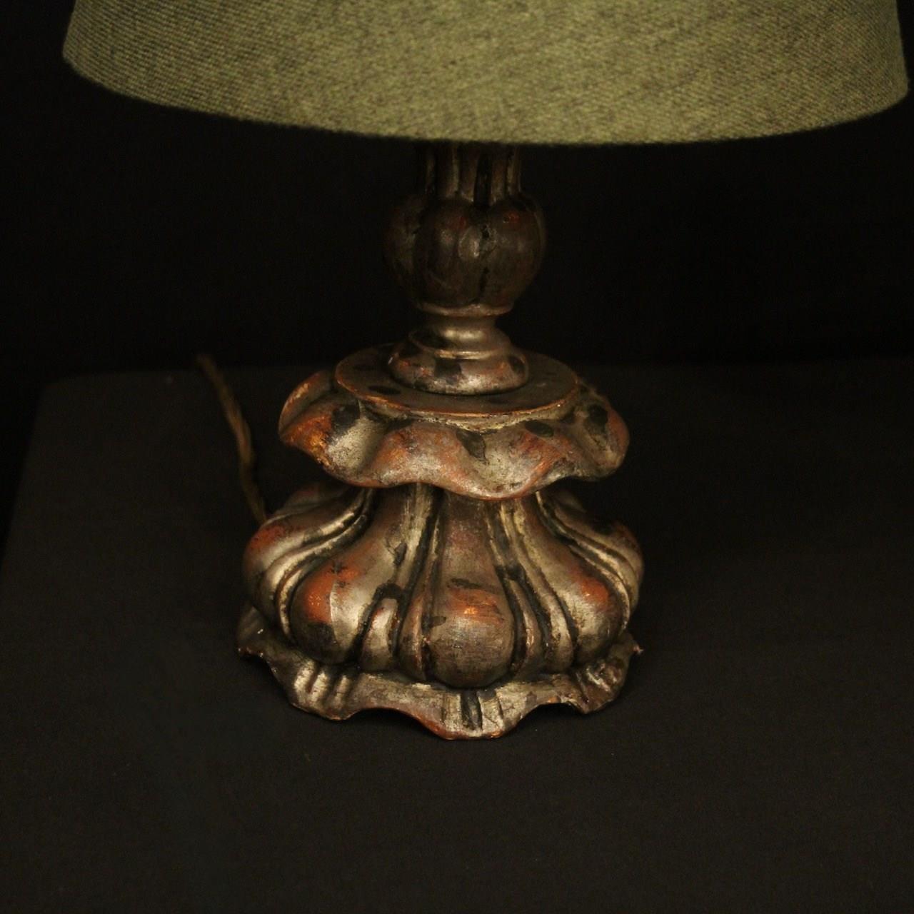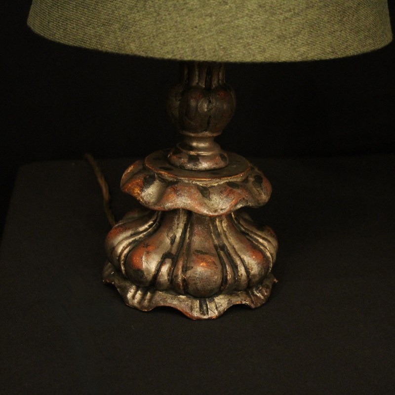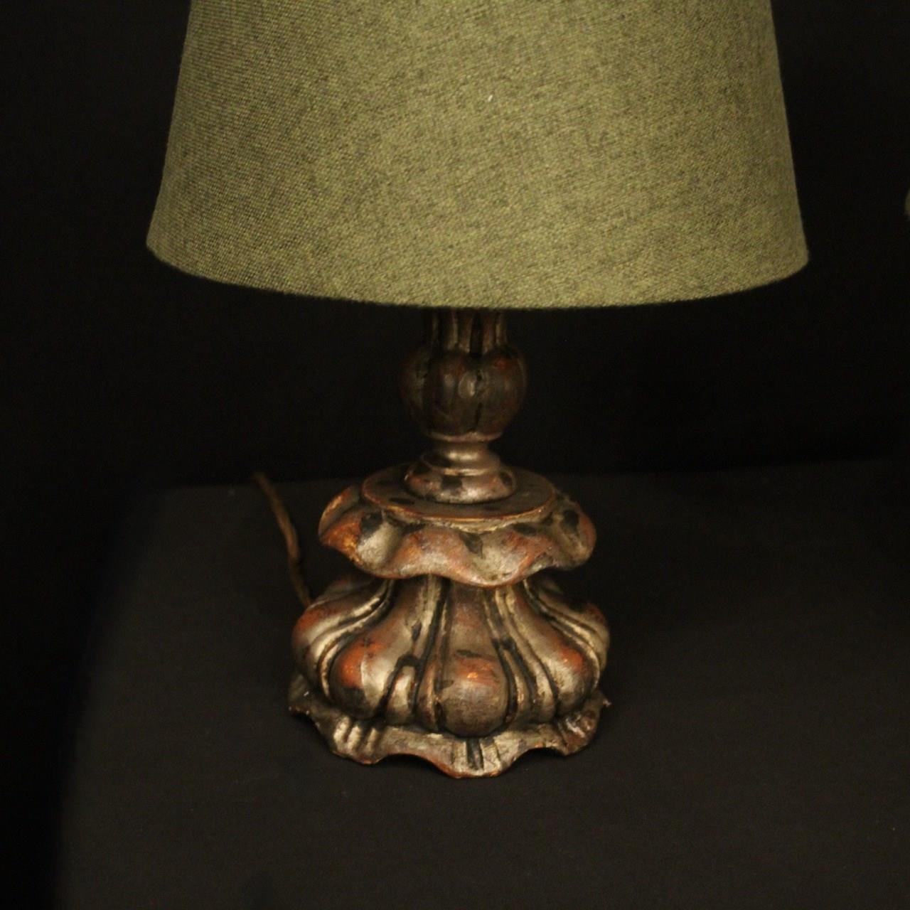 A French pair of silver giltwood single light table lamps, the bulbous reeded centre with circular scalloped reeded base. Nice original patination. Fully rewired and PAT tested. Comes with Green linen shades.