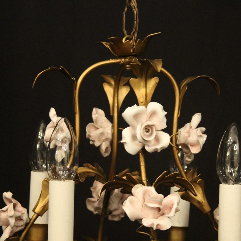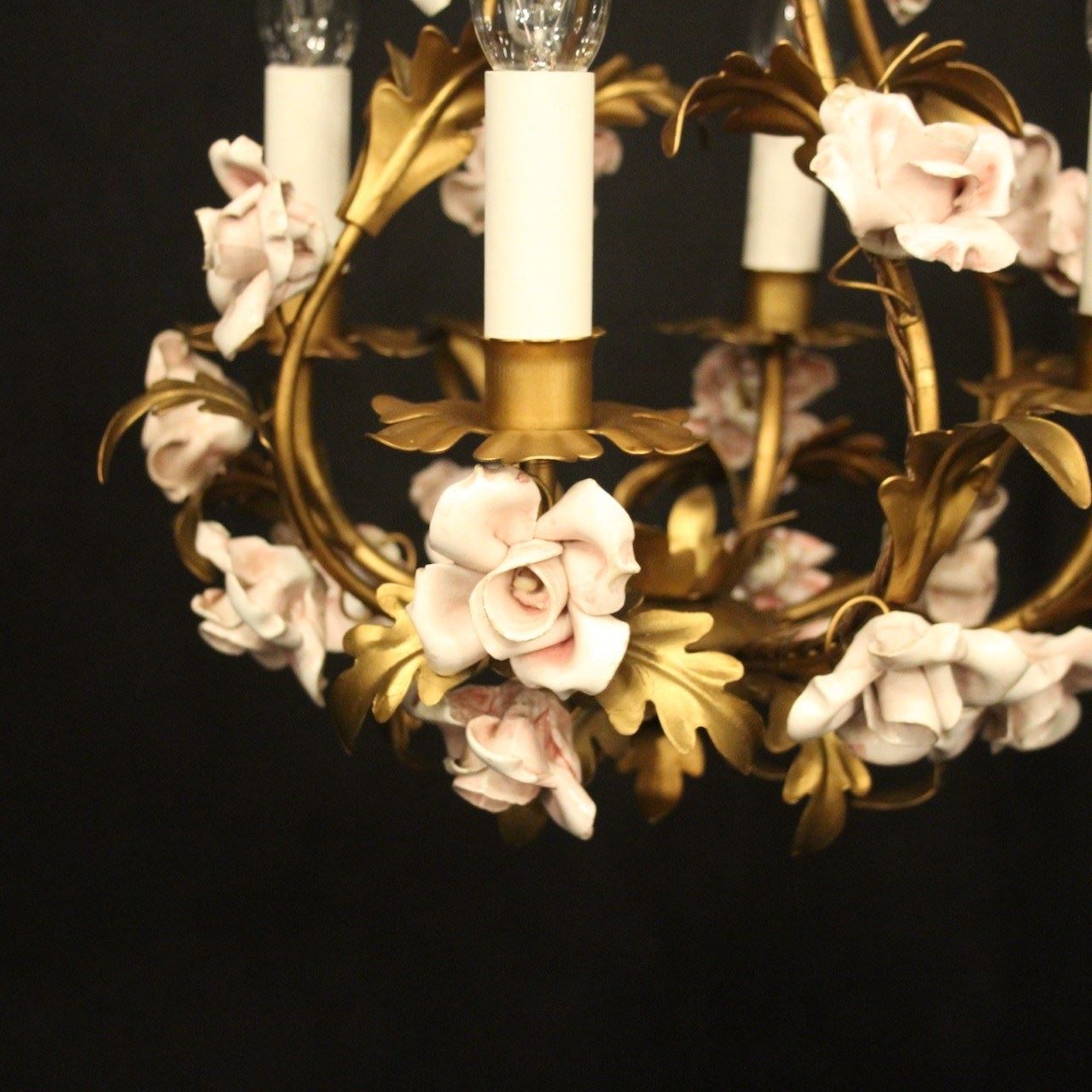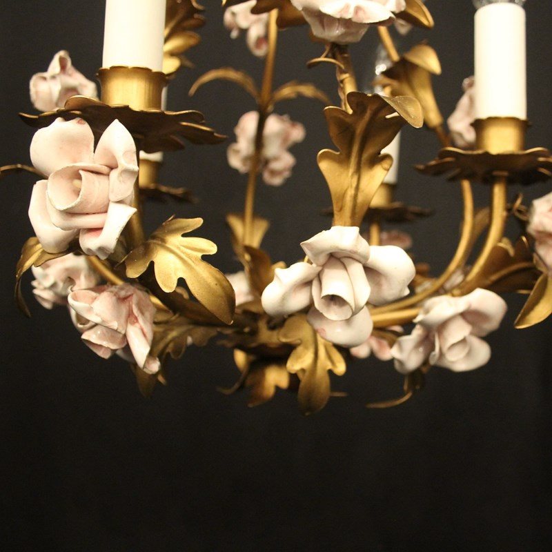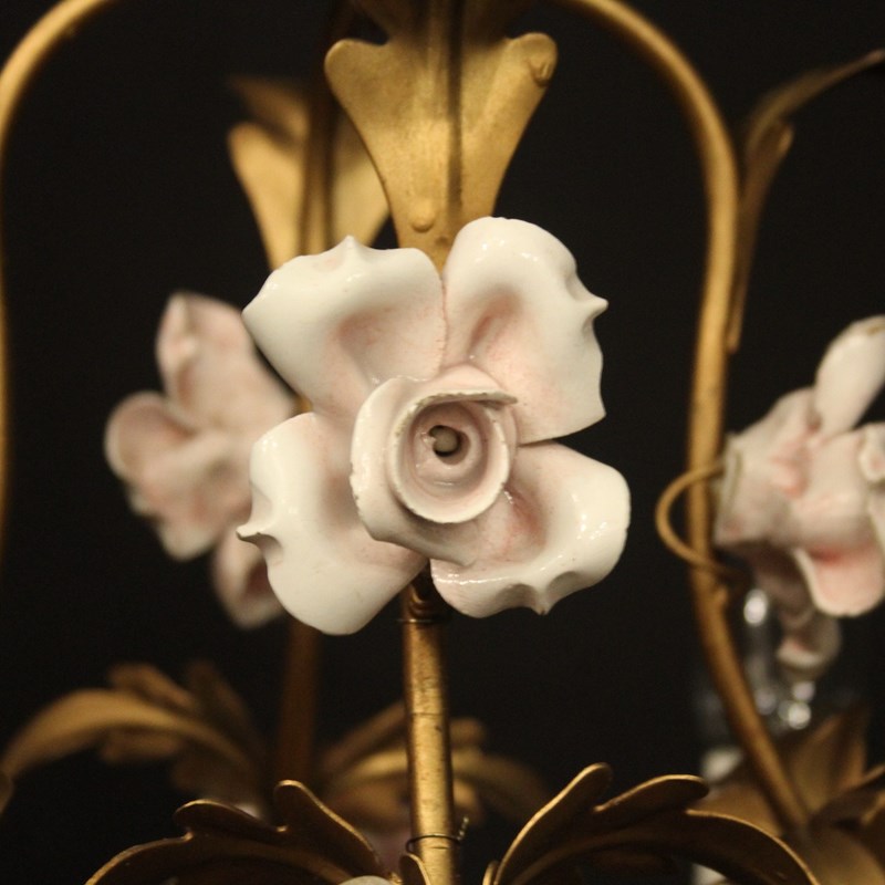 French Toleware & Porcelain 4 Light Flower Chandelier