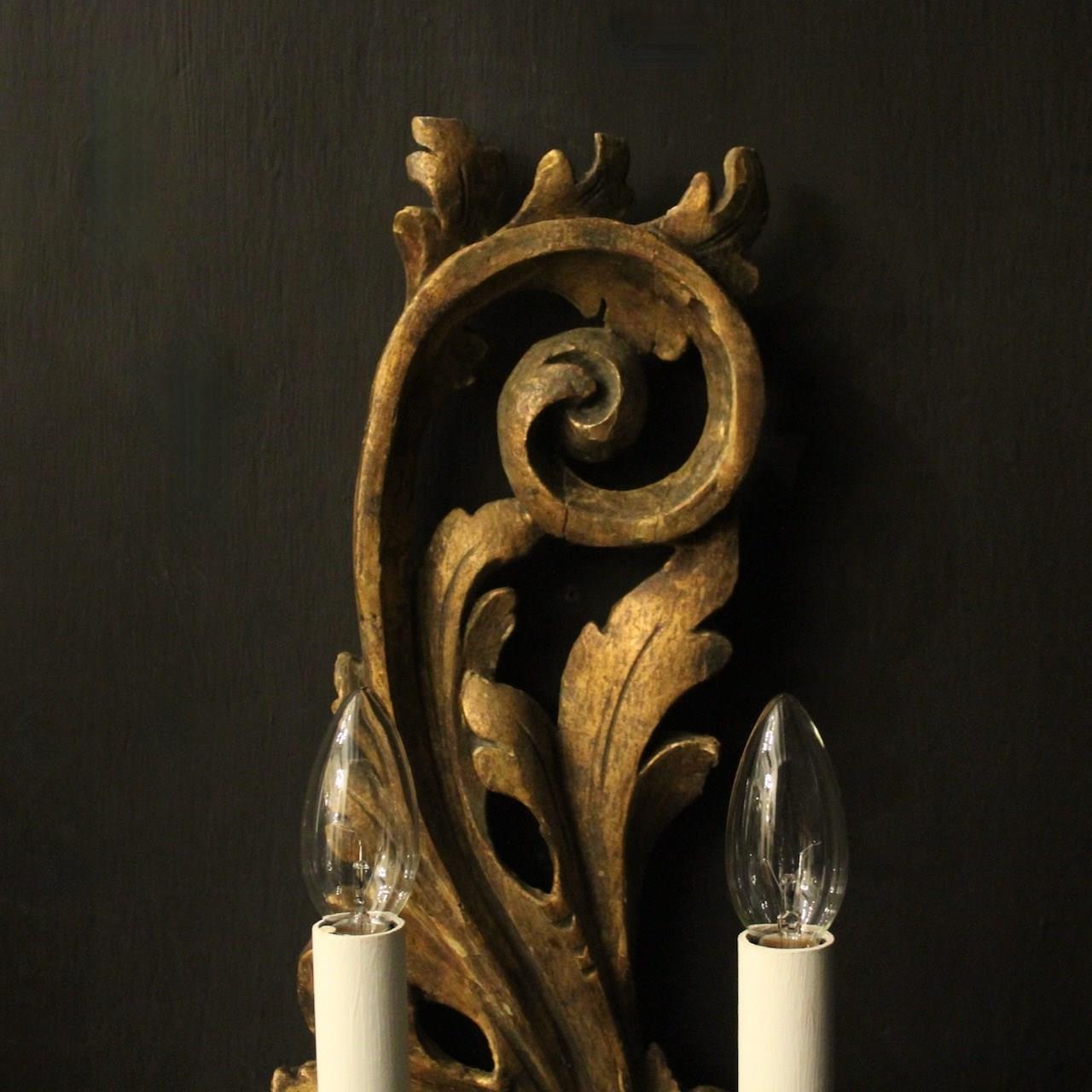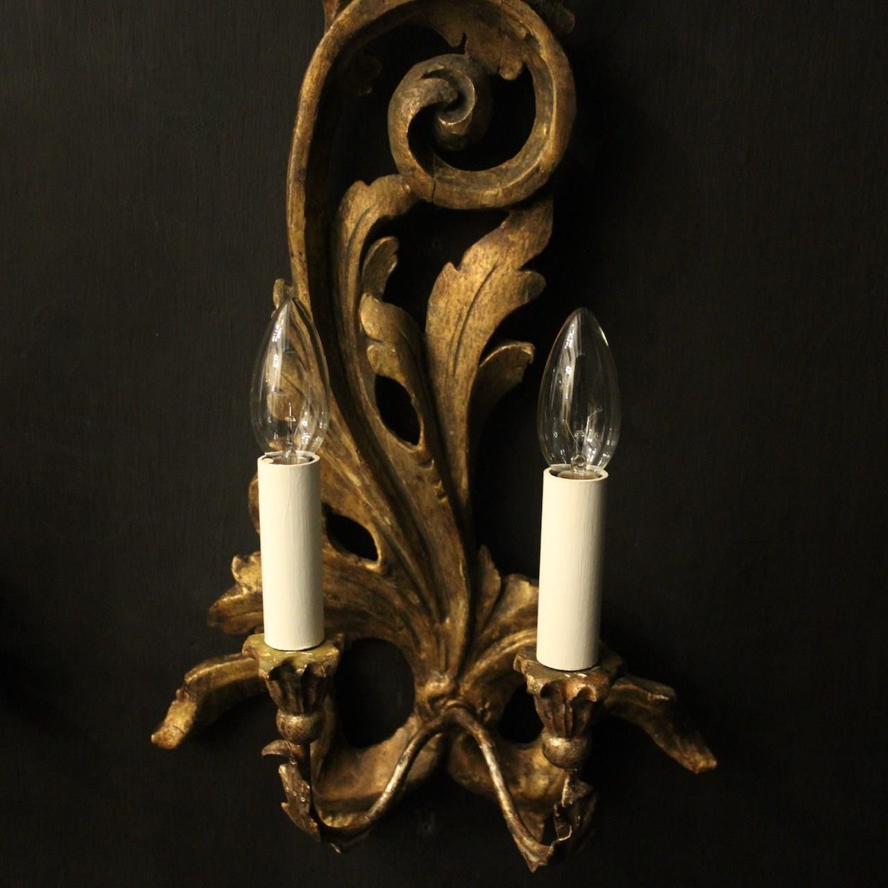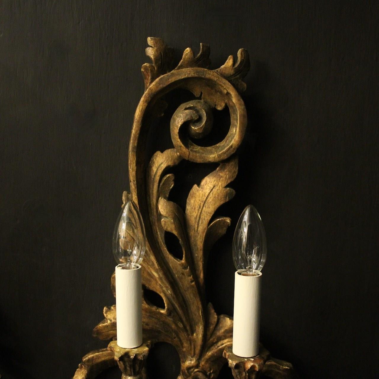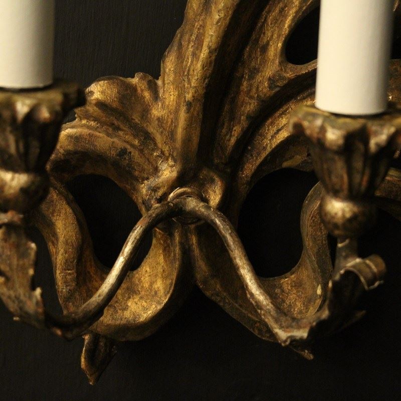 Italian Giltwood Twin Arm Antique Wall Lights