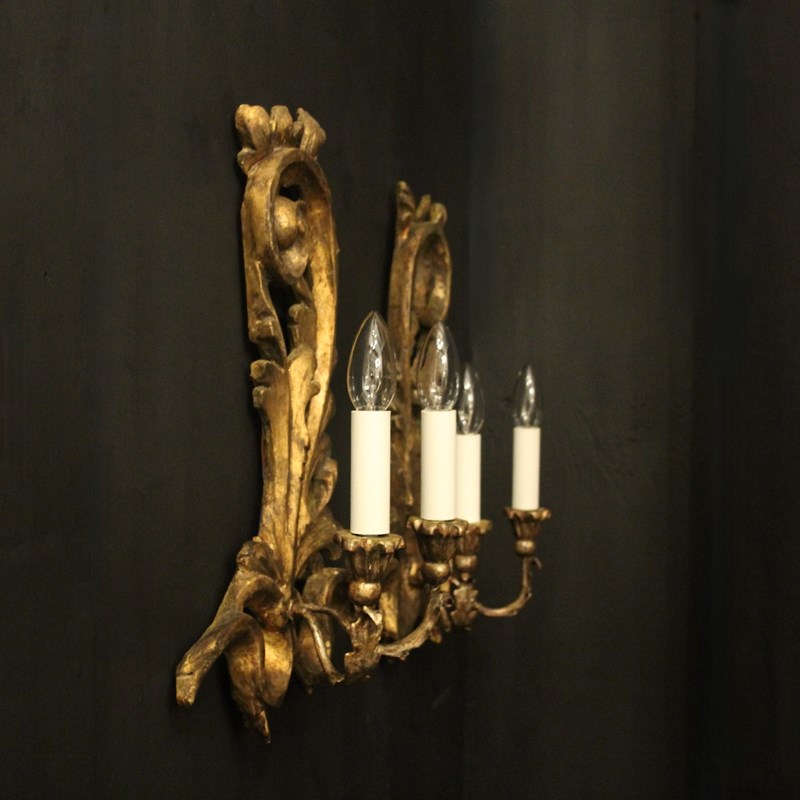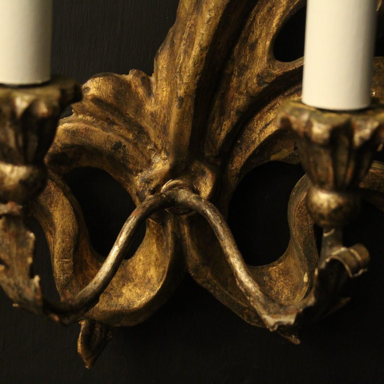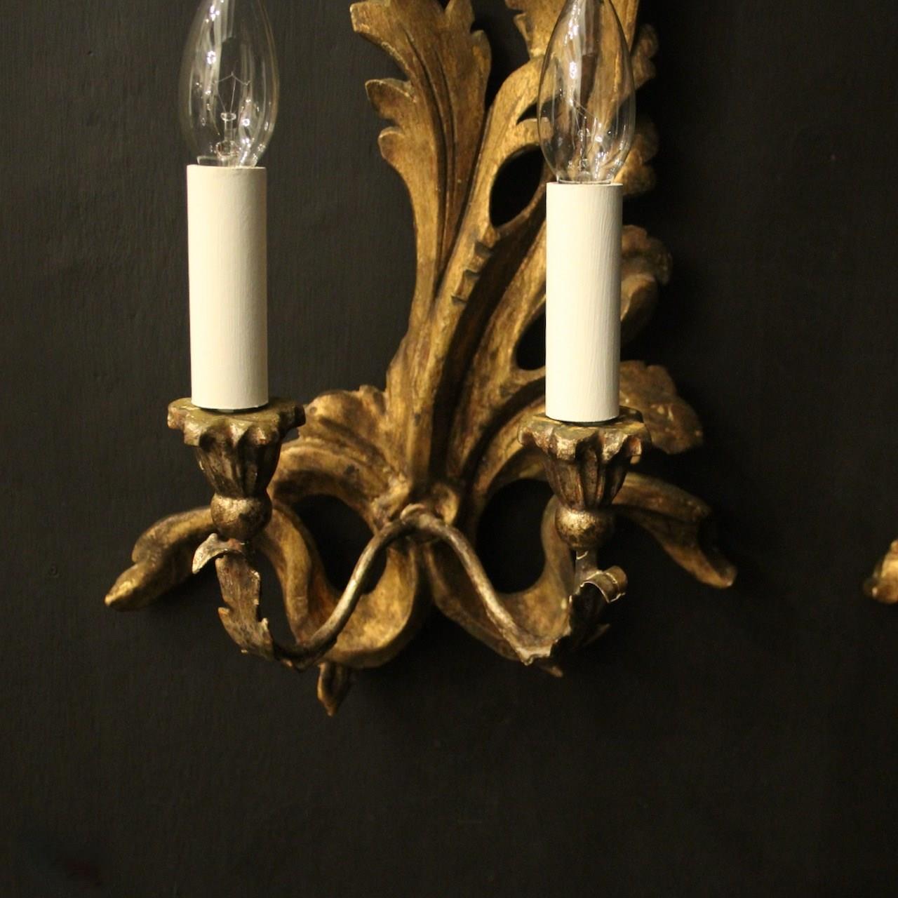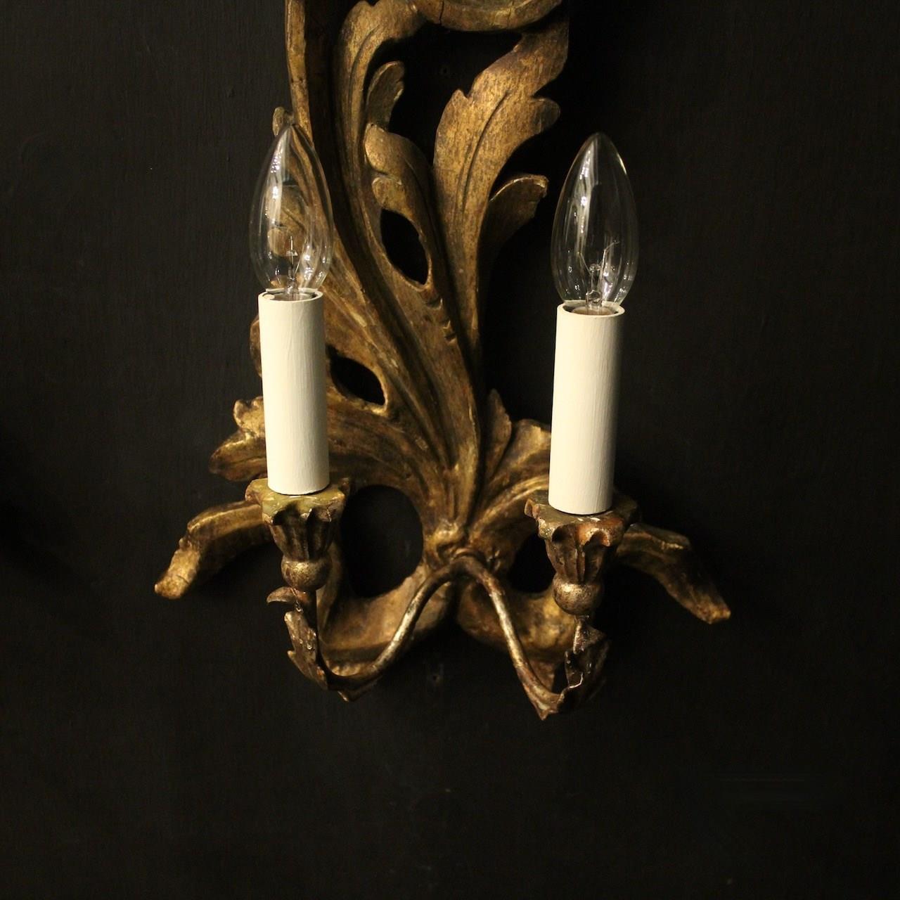 Italian Giltwood Twin Arm Antique Wall Lights
