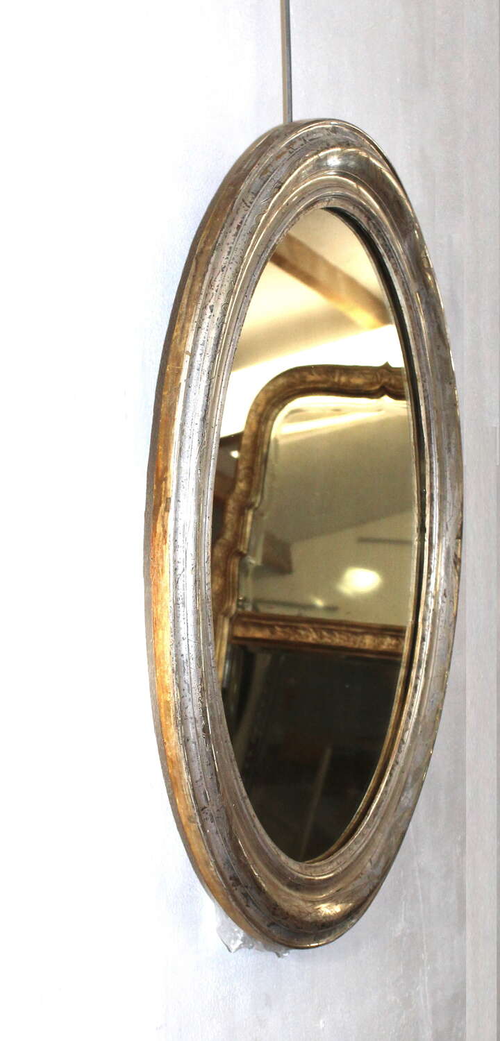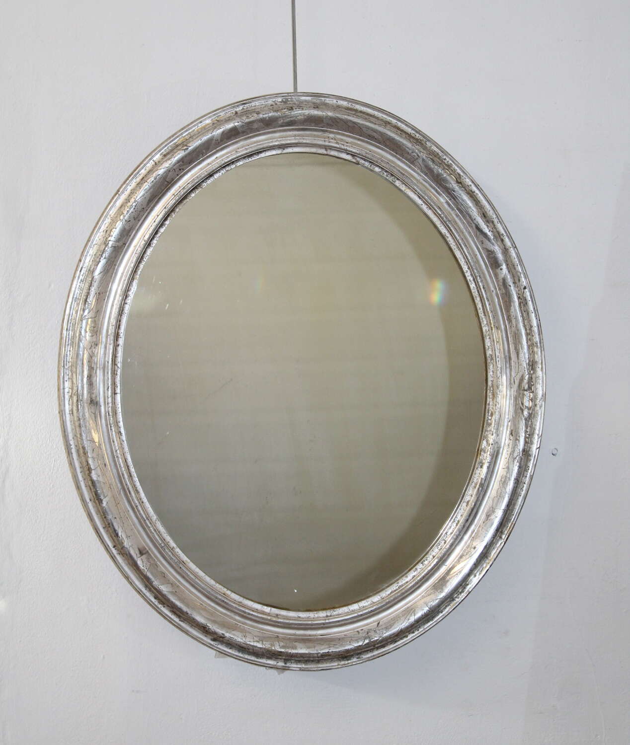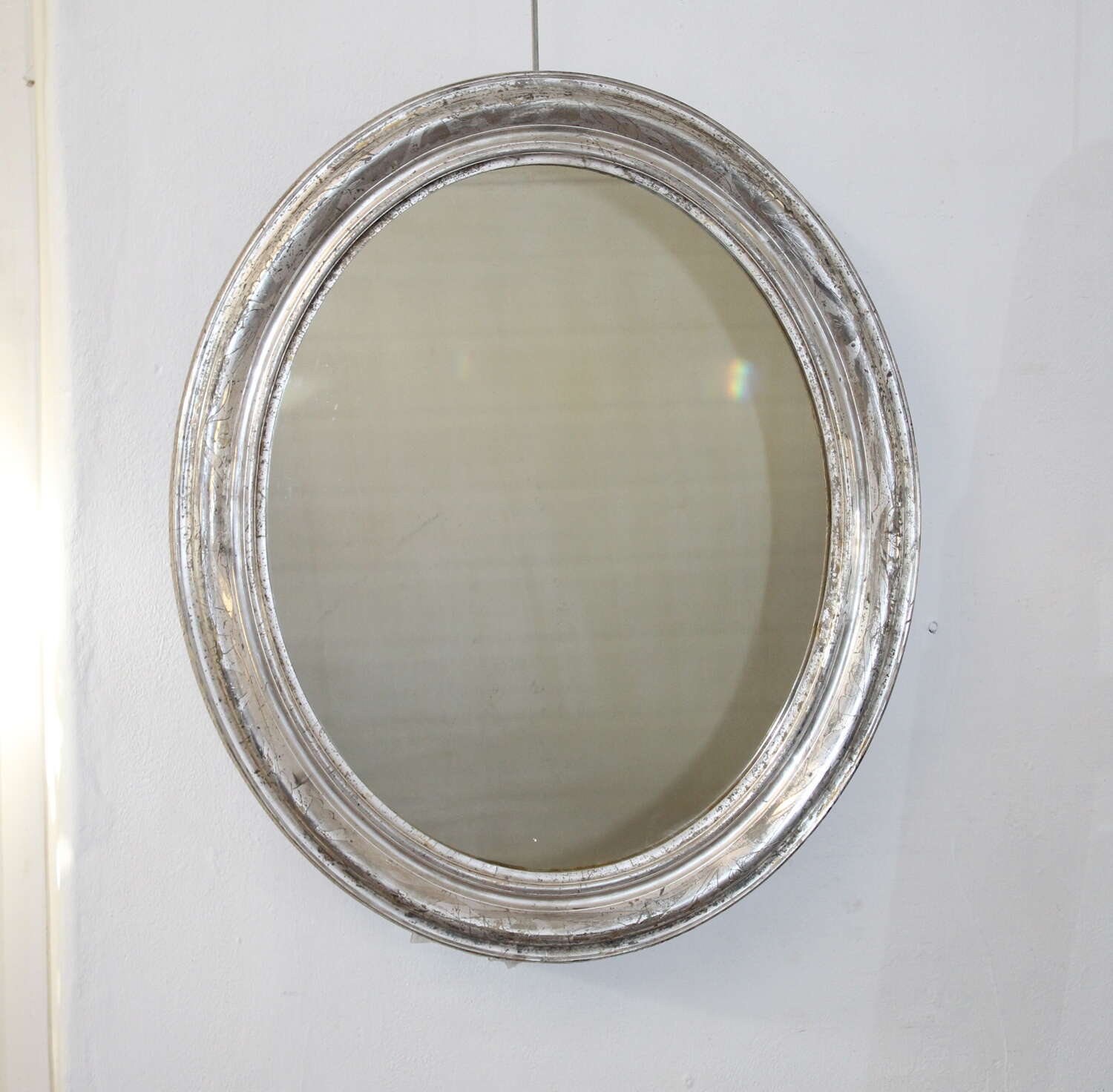 Late 19th century French oval mirror with rare, etched, silverleafed frame decorated with a flower and leaf design. After over 100 years of dusting, the silverleaf has developed an attractive patina which helps reveal the design. The original mirror glass is in very good condition with just a very little light age and gives an excellent reflection.