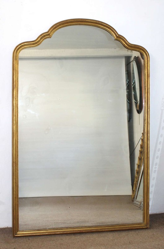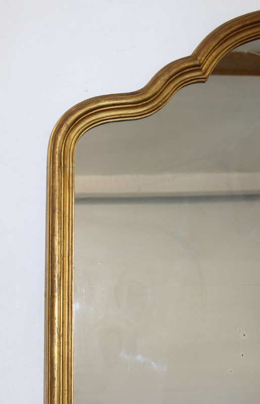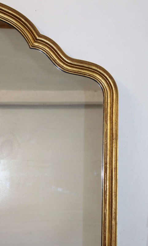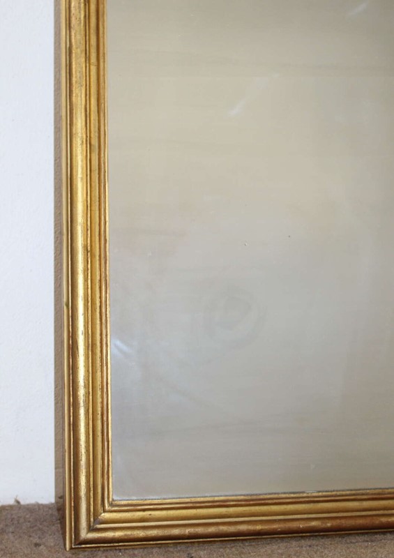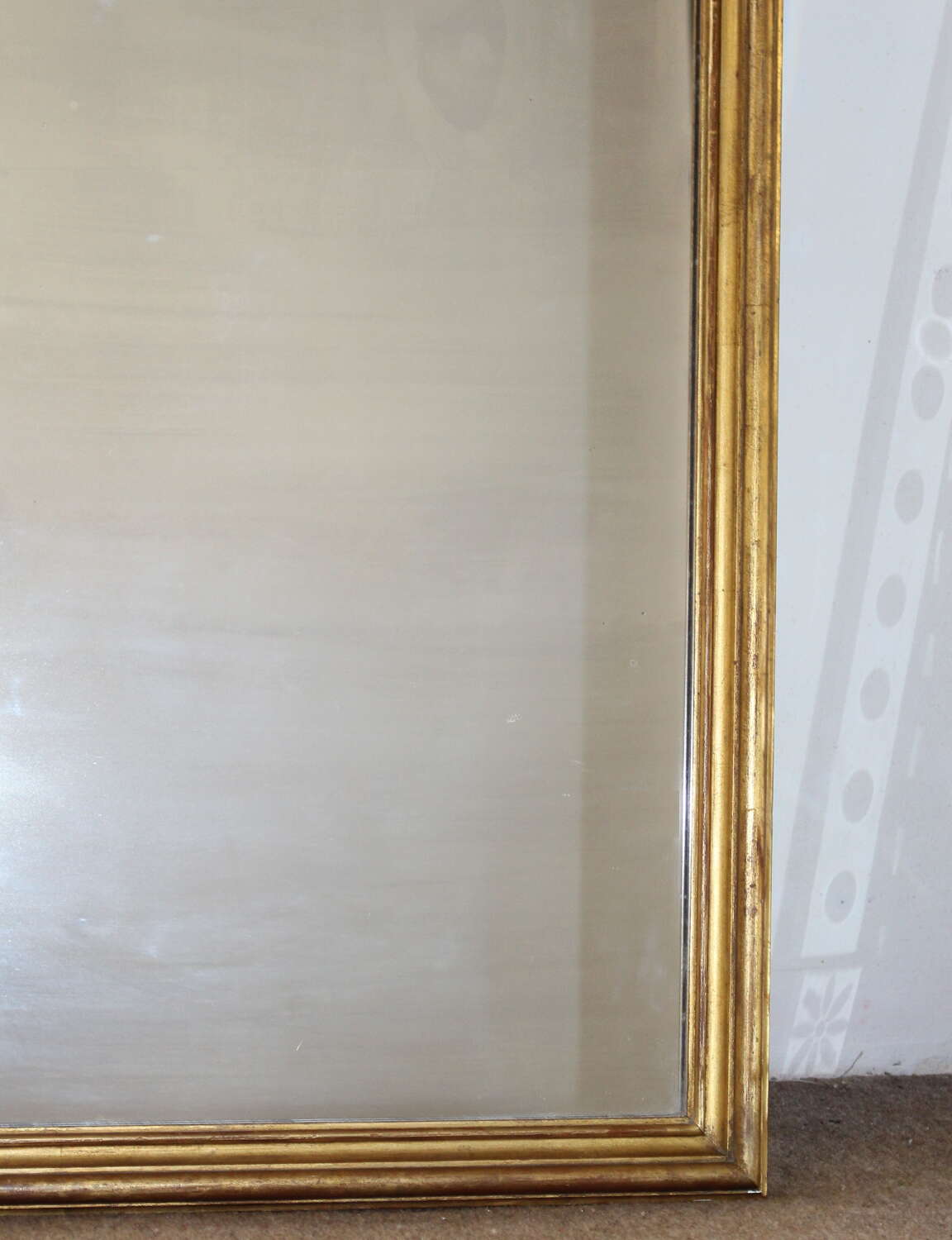 Very large and elegant French mirror, circa 1940s, with narrow gilt frame and original glass with a little light age.
