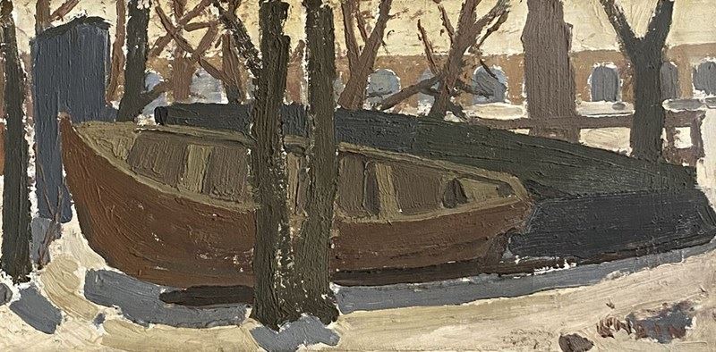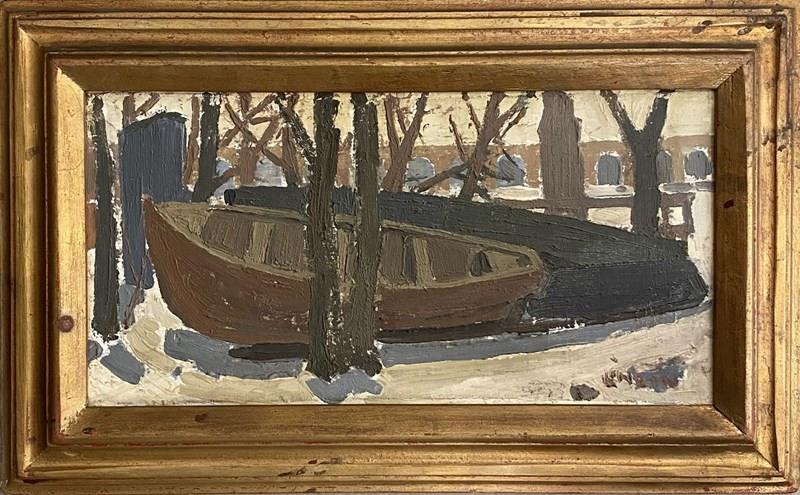20Th Century Painting 'Boats On A Shore'