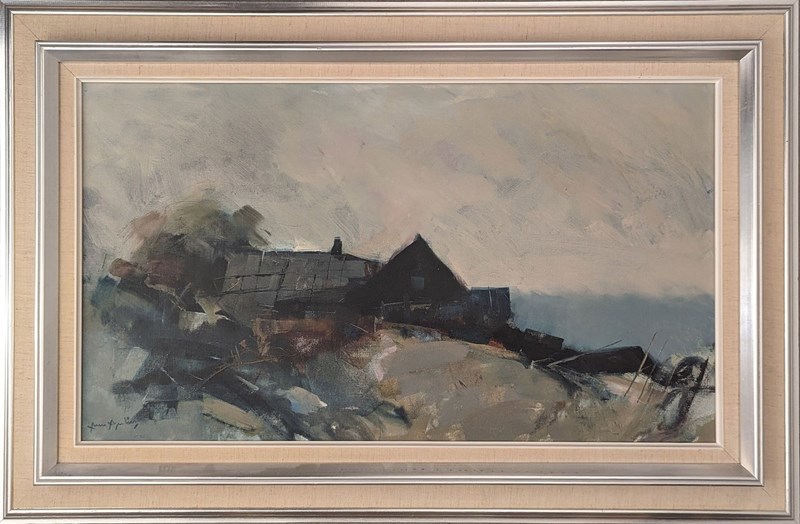 An original moody landscape by an unknown Swedish painter working in the mid 20th century.