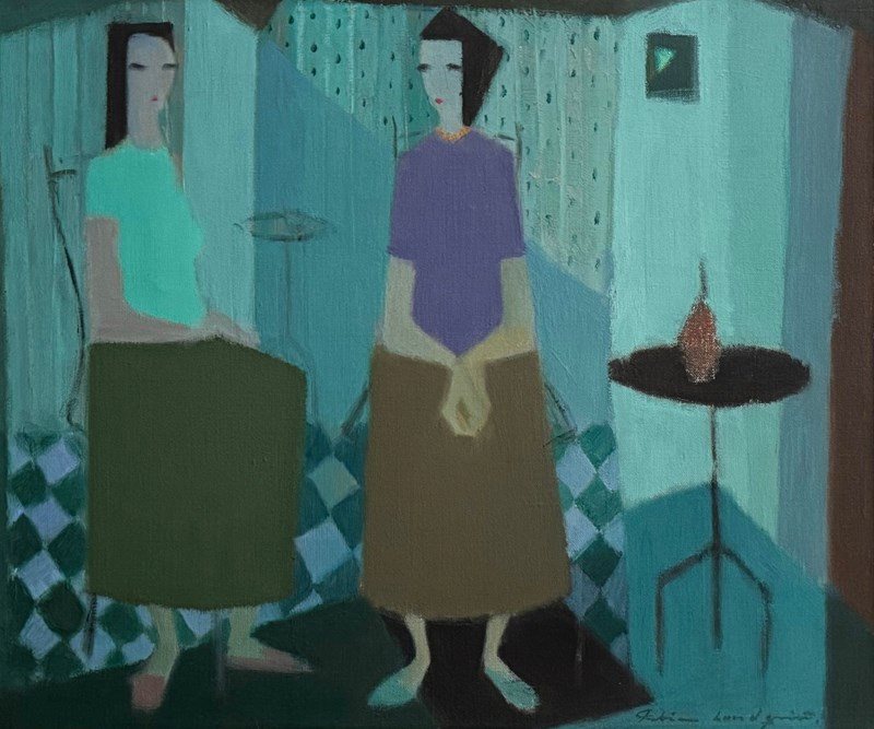 Fabian Lundqvist (1913–1989) 'Two Seated Figures In A Modernist Interior'