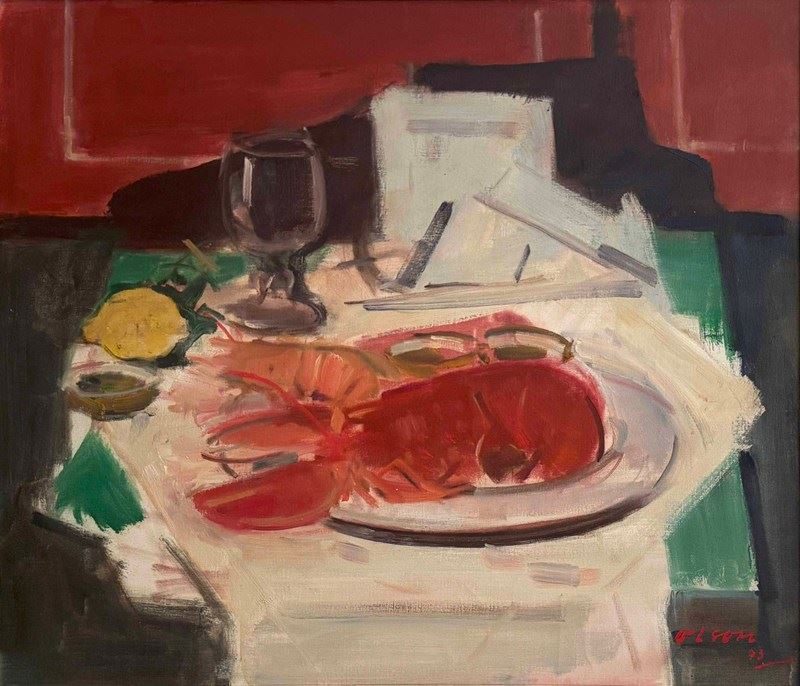 'Lobster, Langoustine & Wine Glass, 1973' By Ove Olson
