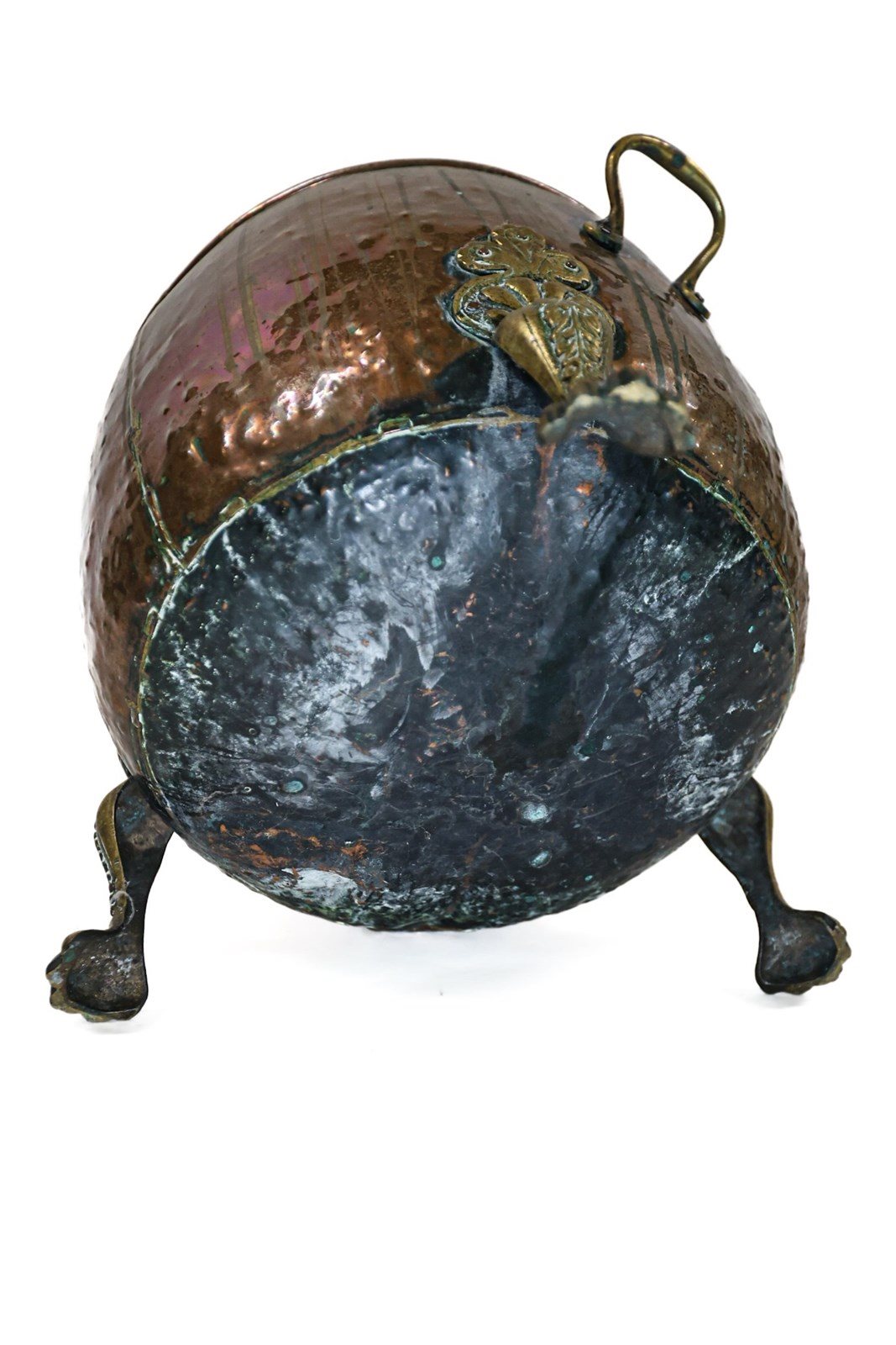 3 cast brass feet, riveted to the sides,with Claw Feet