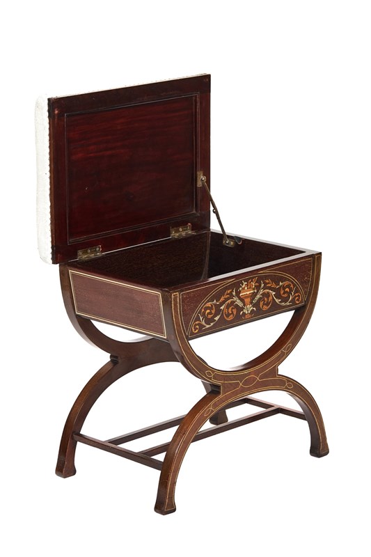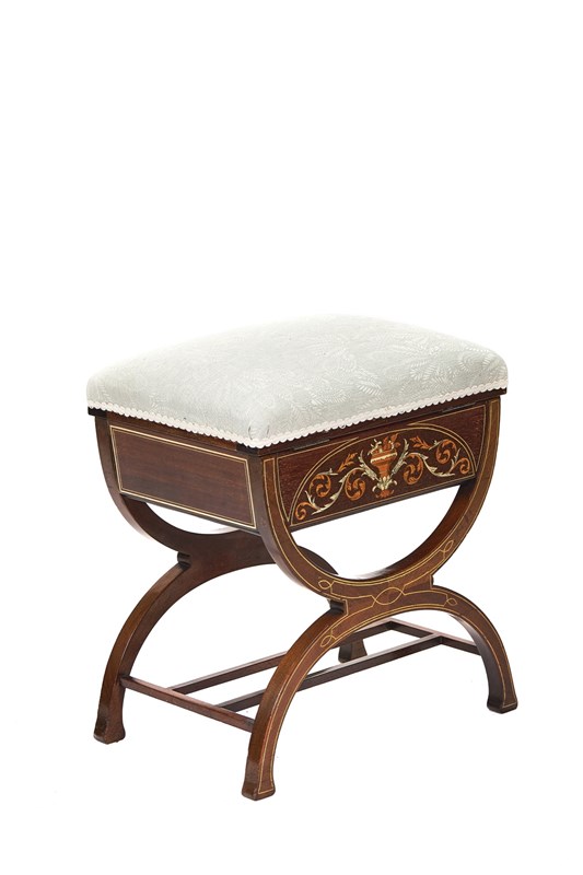 Victorian Mah & Inlaid Lift Up Seat Piano Stool