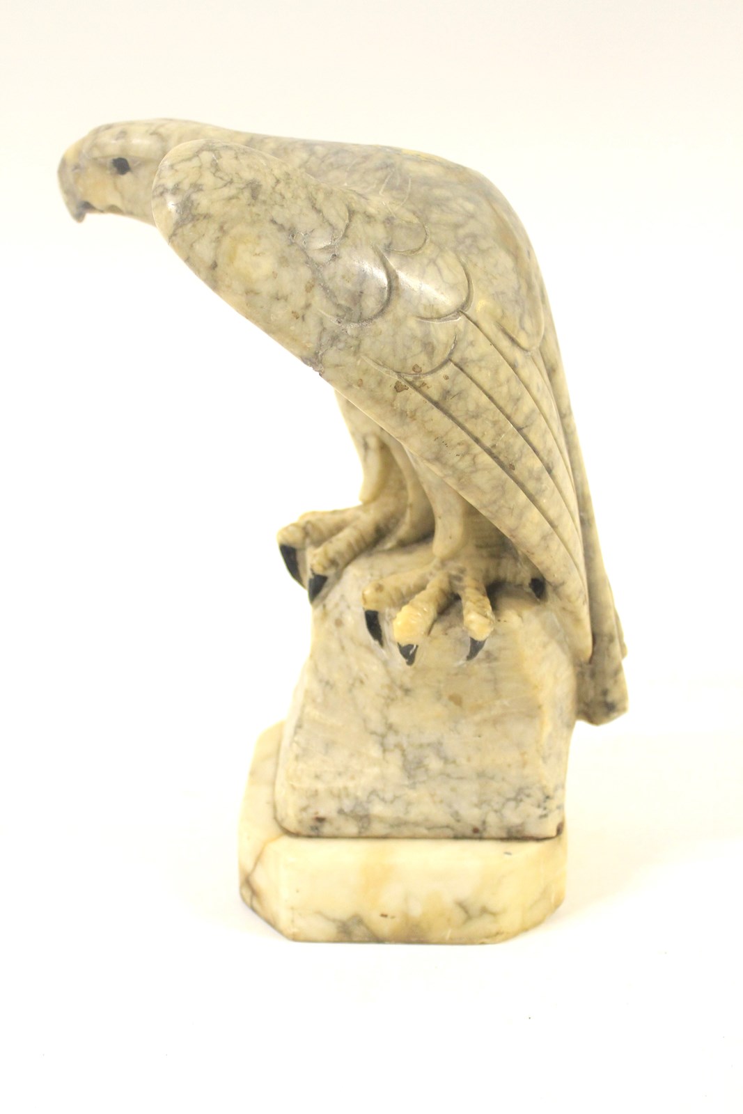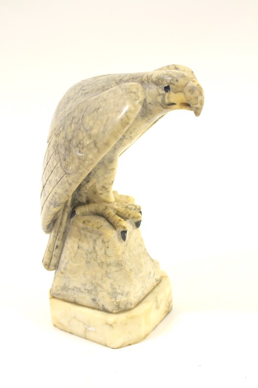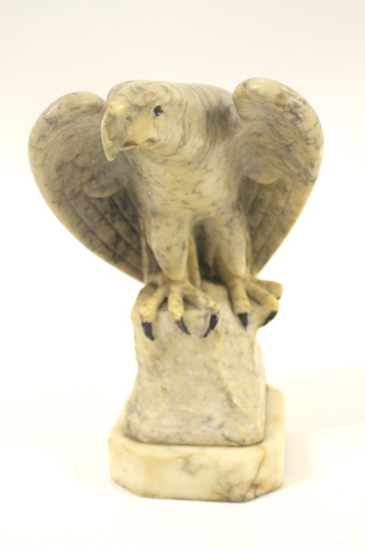 Alabaster Figure of and eagle circa 1930s, Standing on a rock. Detail Of The Feathers. Good detail of the claws, Black painted eyes & claws, good original condition no chips