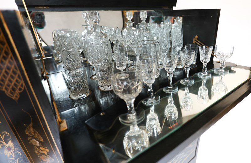 Fitted with pair Decanters, Water Jug , Wine, Liquer & Tumbler glasses,