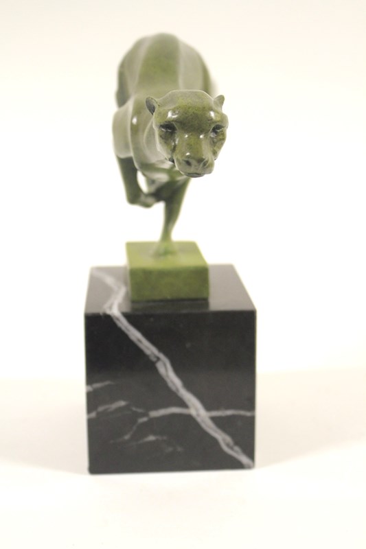 Art Deco Green Patinated Bronze Stylized Cheetah