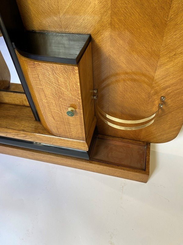 Art Deco Oak & Ebonised Hall Stand/ Hat & Coat Stand