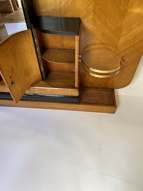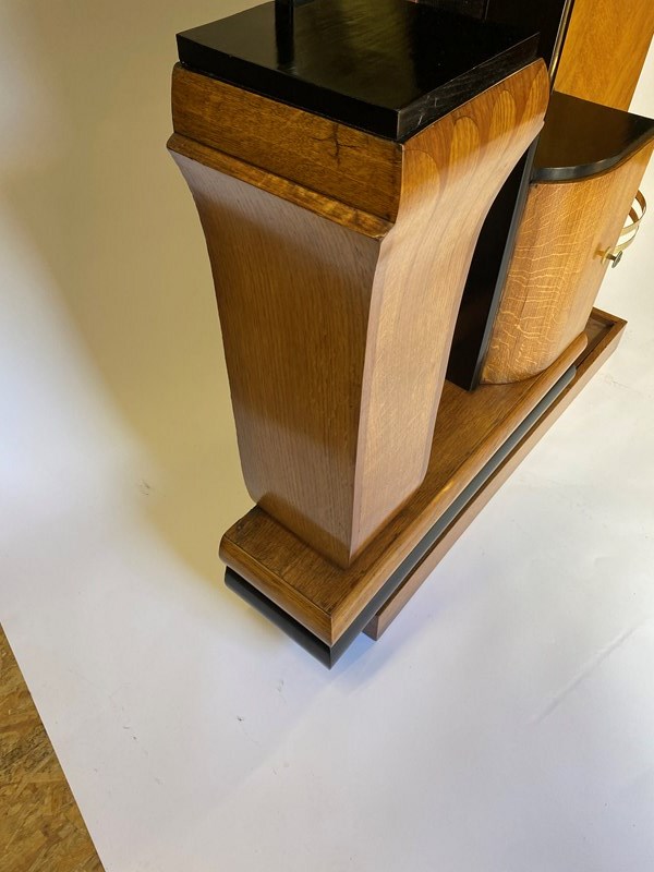 Bombe shaped pedestal with Art Deco stylised, inlaid oak detail.