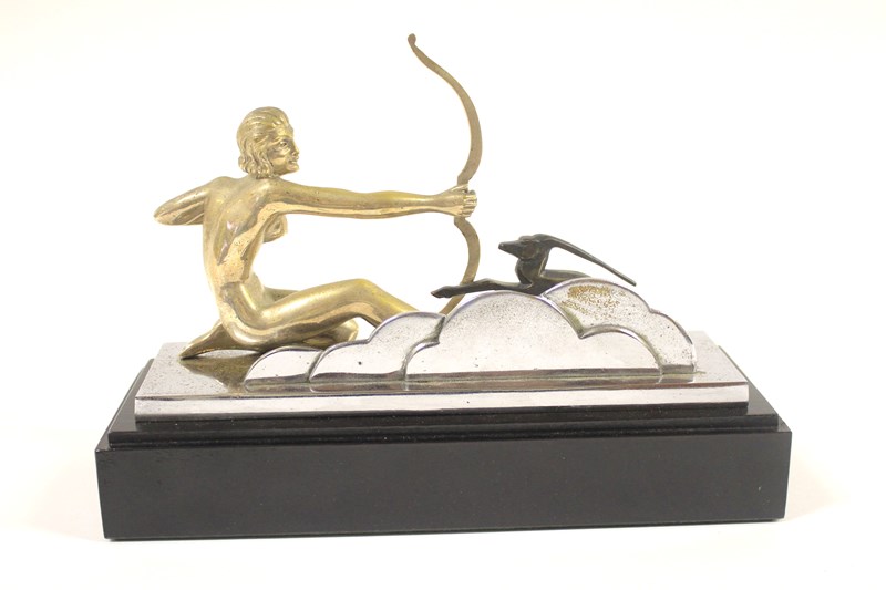 Art Deco Silver Plated Diana The Huntress Figure C1930s