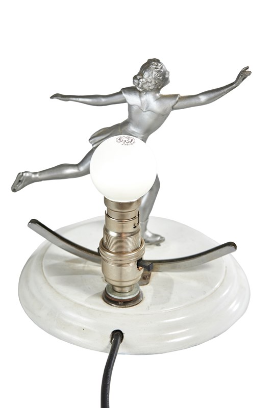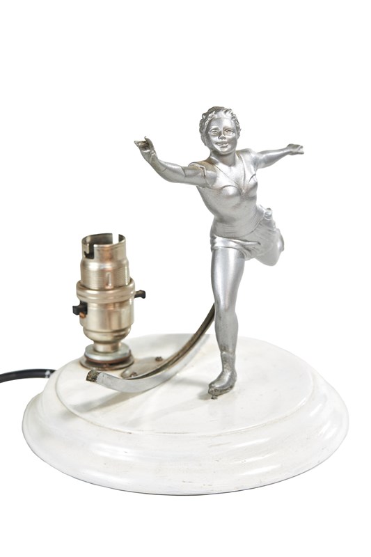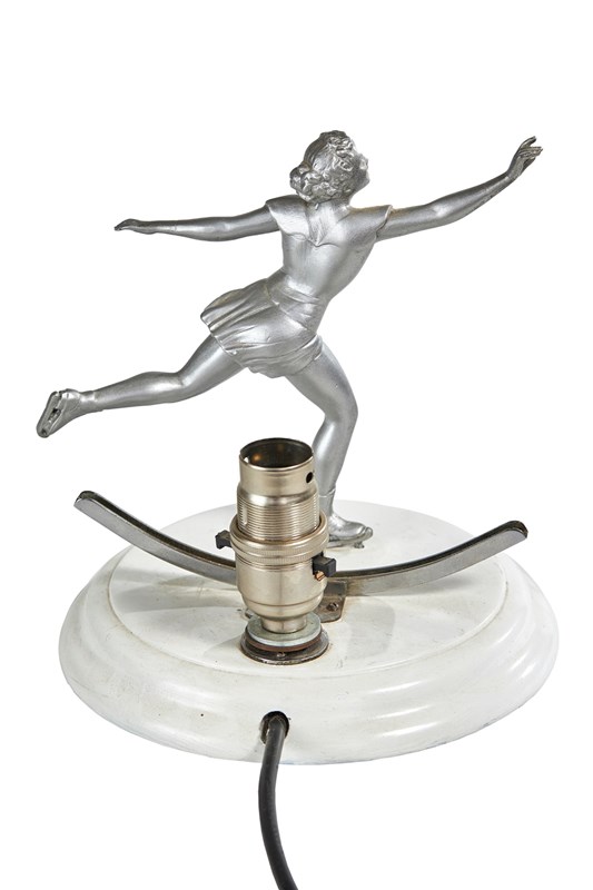 Art Deco Spelter Lady Skater Lamp With Snow Scene