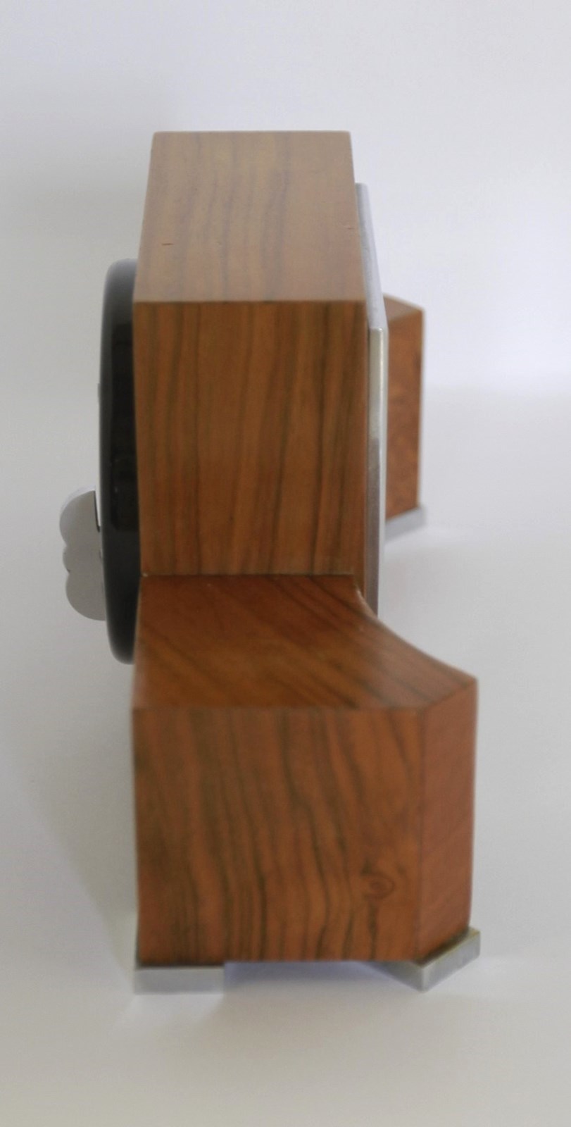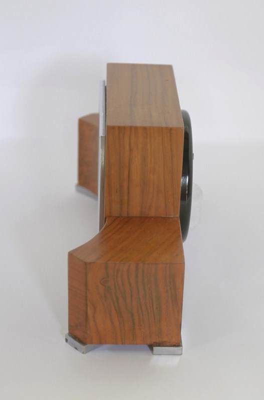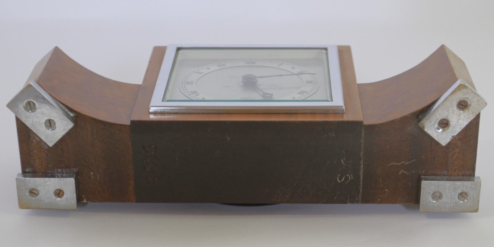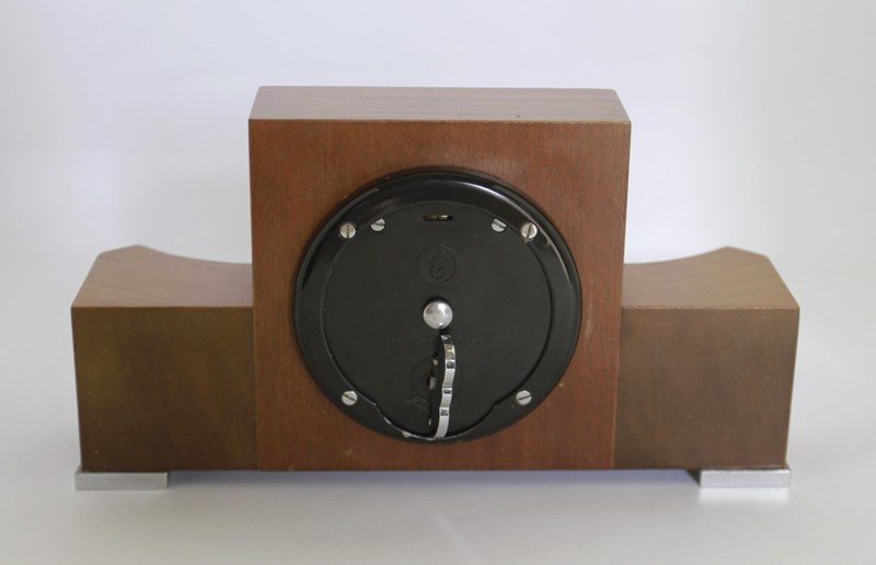 Art Deco Walnut & Chrome Elliott Mantel Clock 1930S