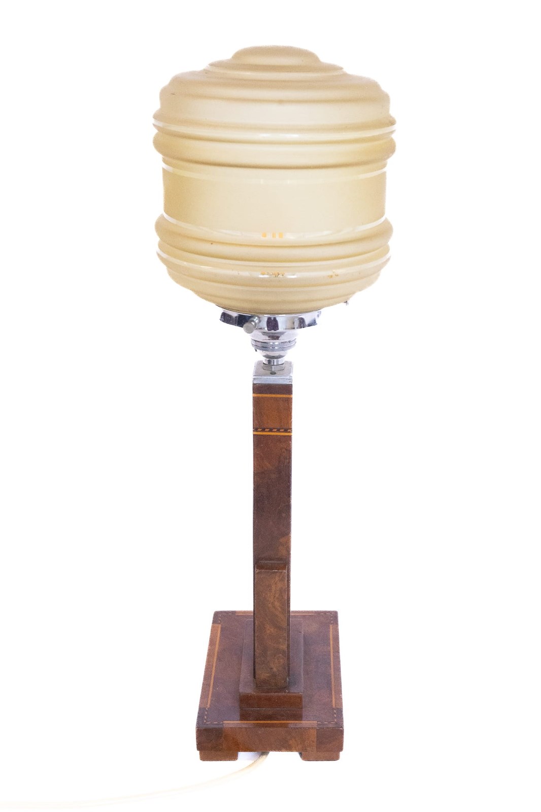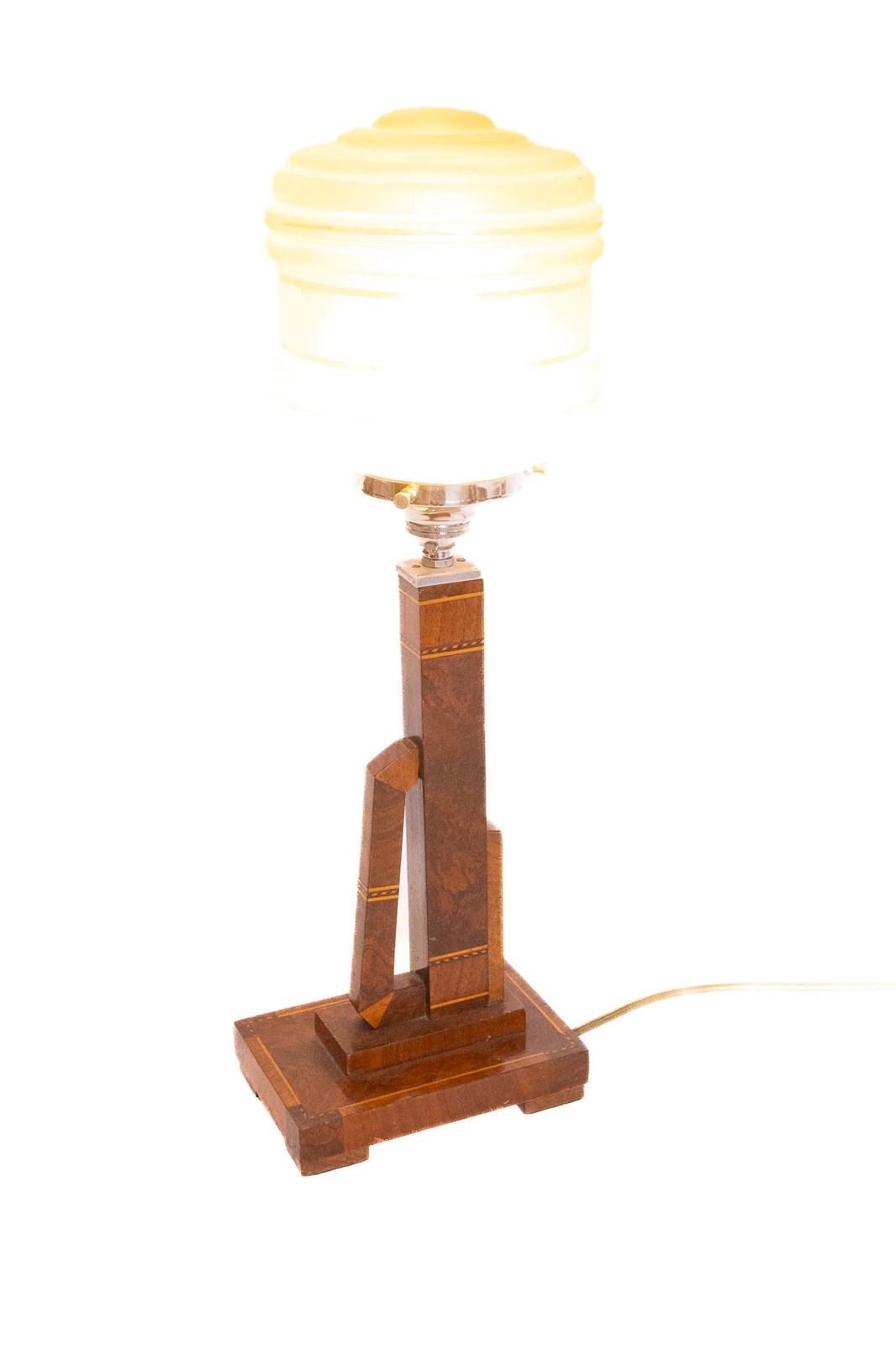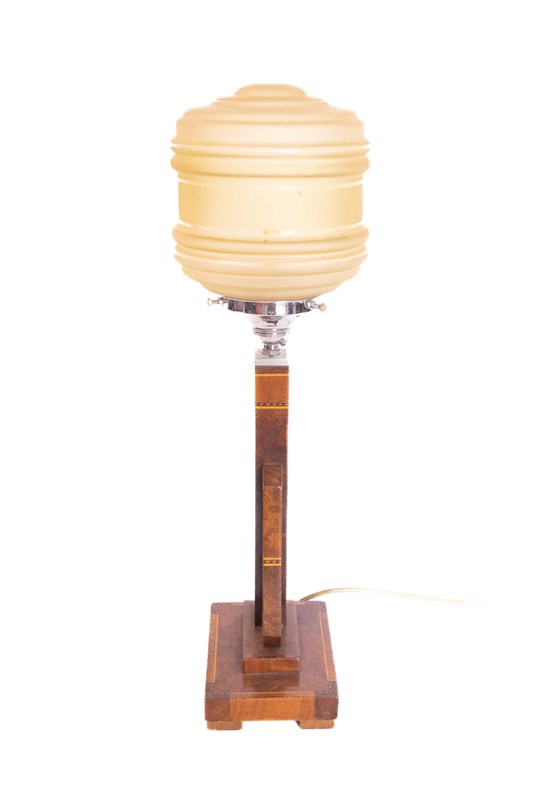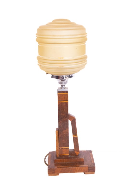 Art Deco Walnut & Inlaid Table Lamp & Shade