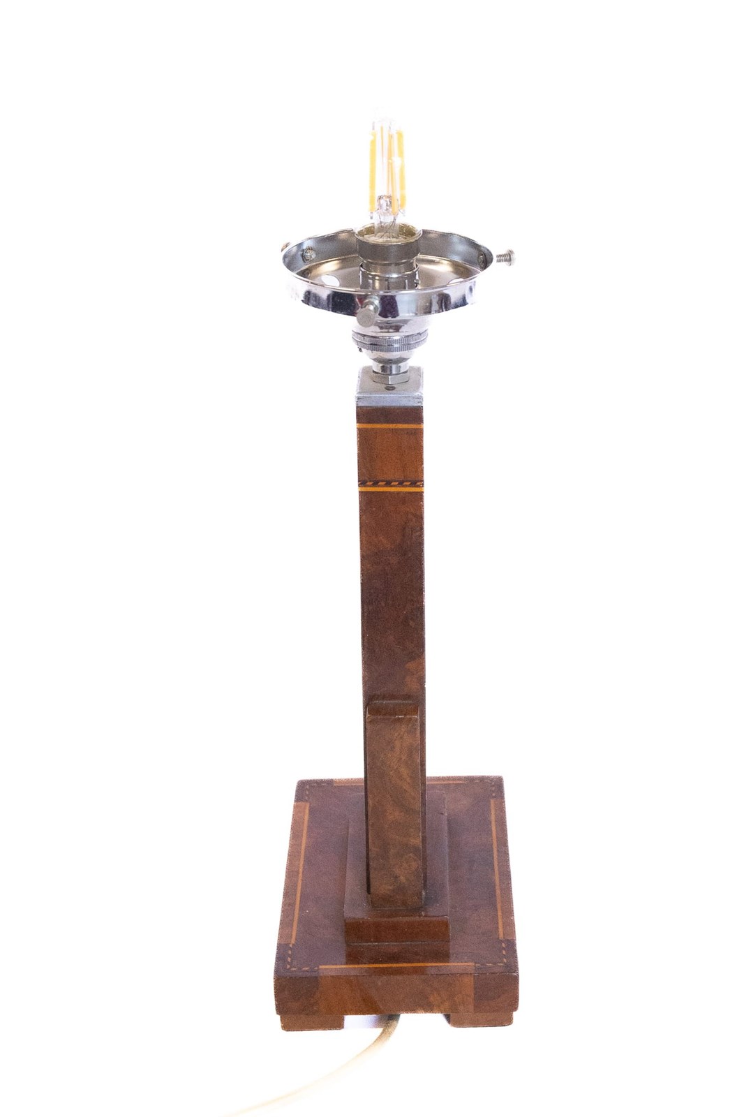 Art Deco Walnut & inlaid table lamp & shade, 1930s