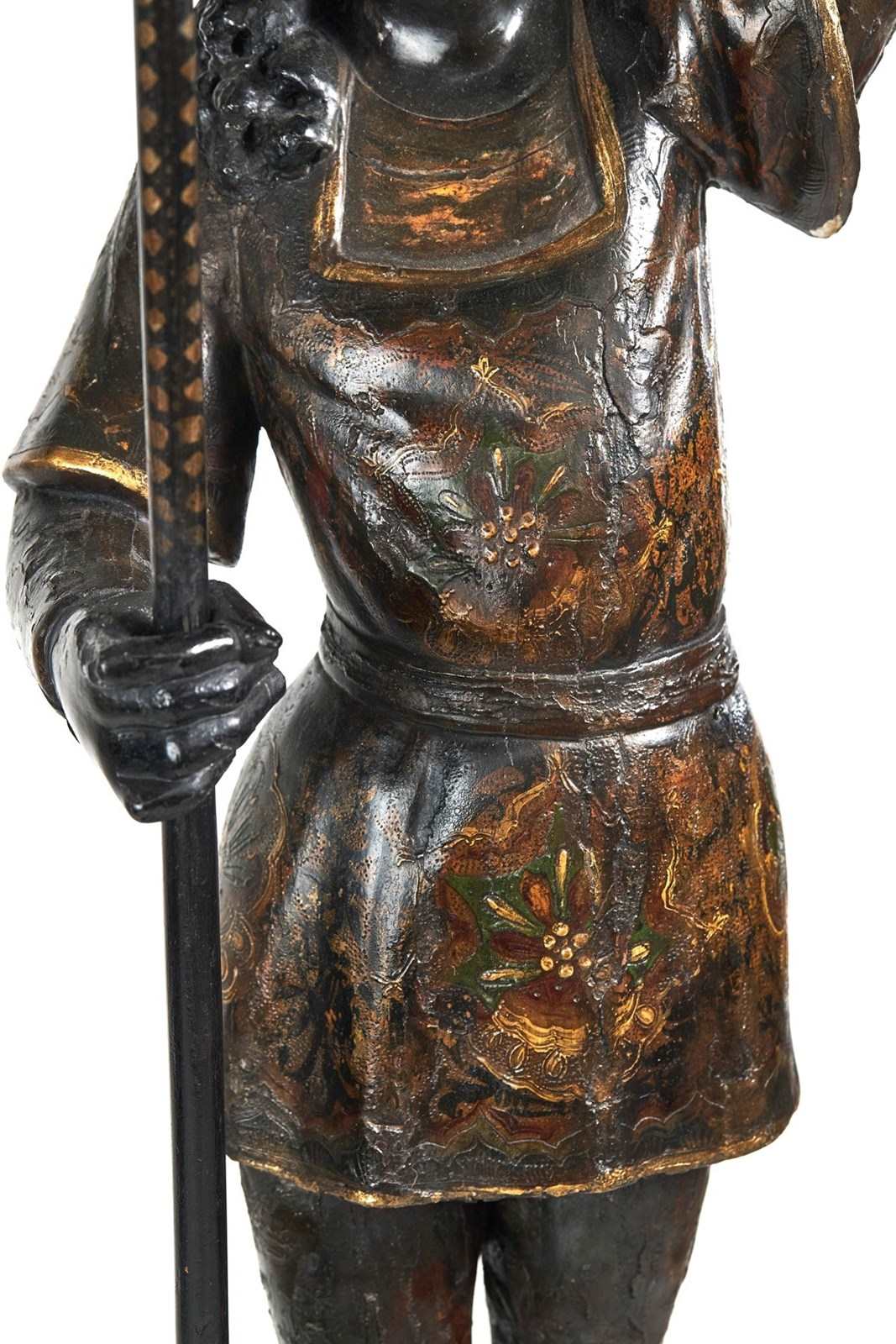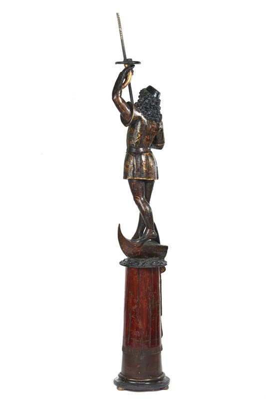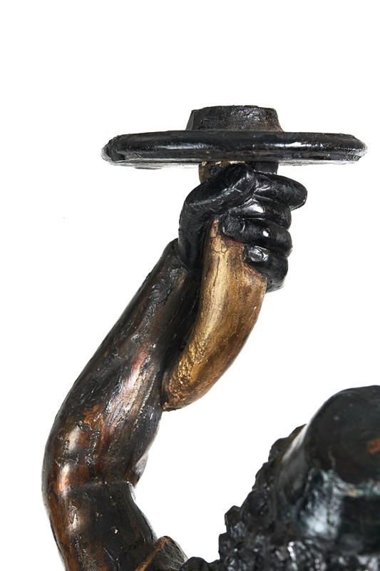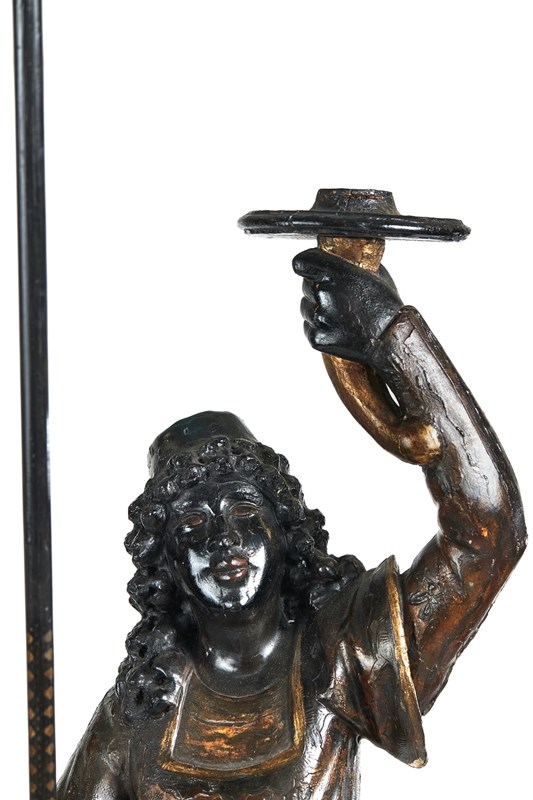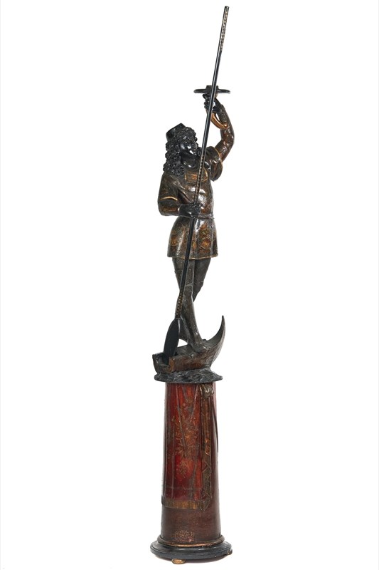 C19th Venetian Carved Gondolier Figure Candlestand, With Polychrome Decoration