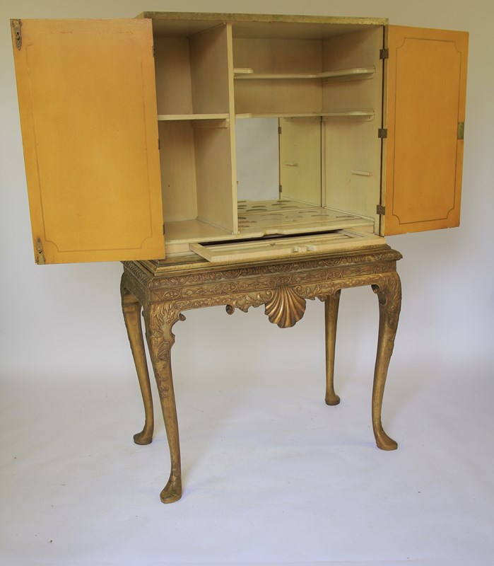 Chinoiserie decorated Cocktail cabinet on carved Silver gilt stand