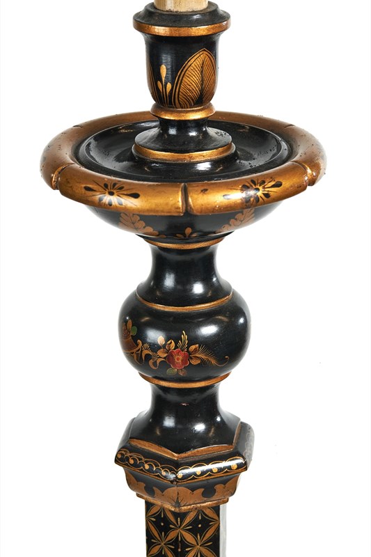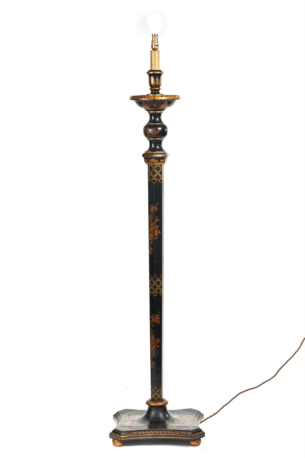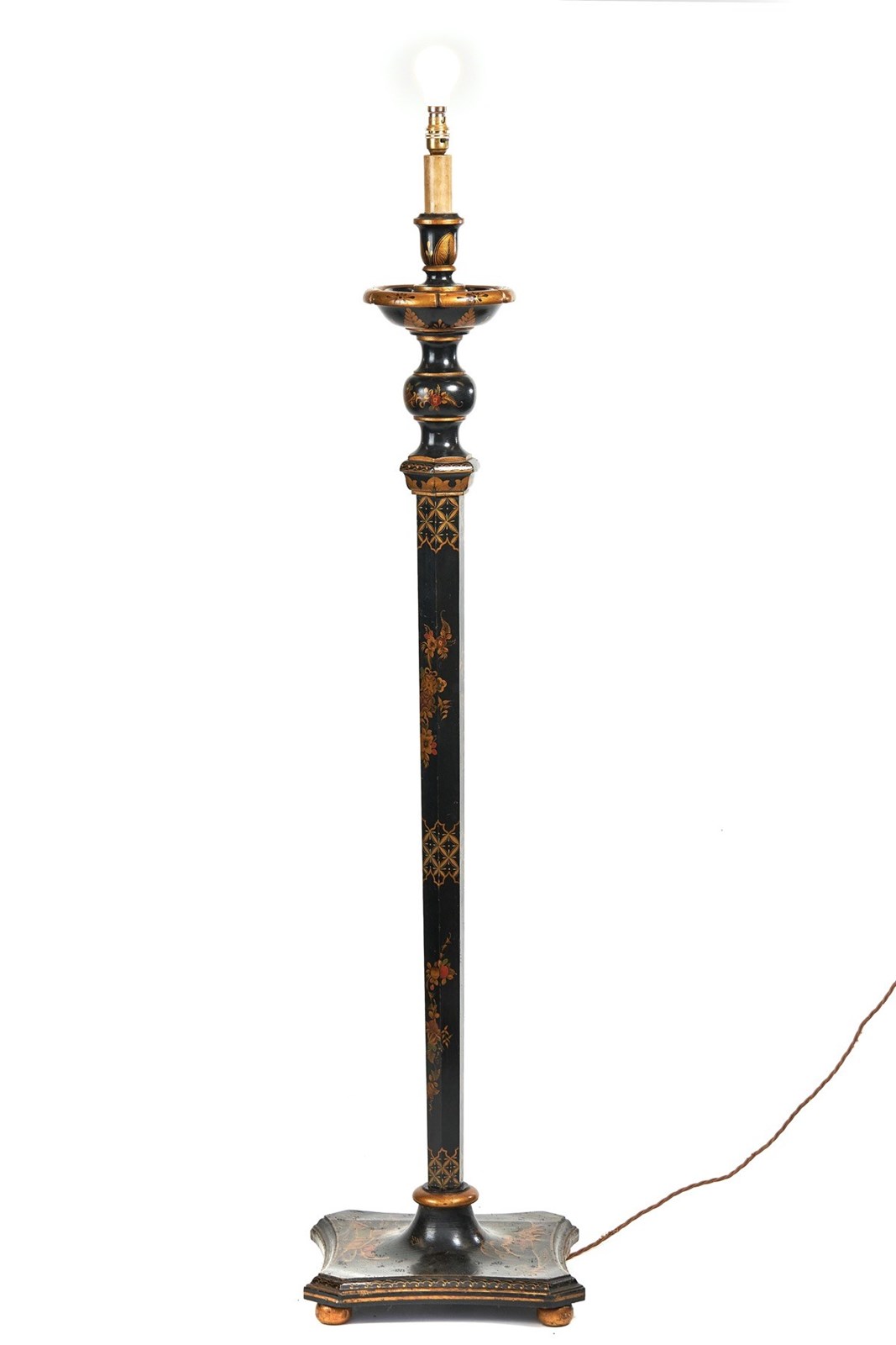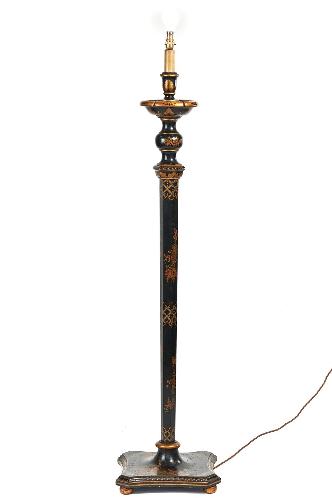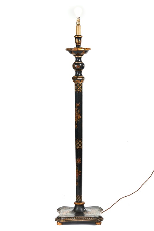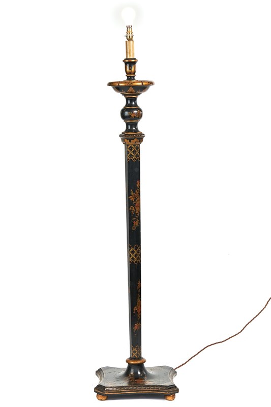 Chinoiserie Decorated Standard Lamp circa 1930s Black & gold in colour.