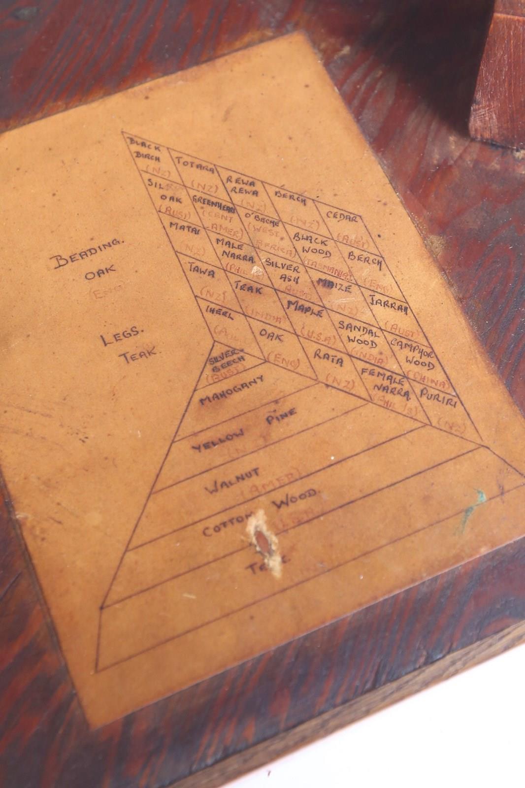 Paper Label under top Listing all the specimen woods used