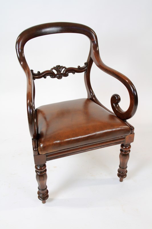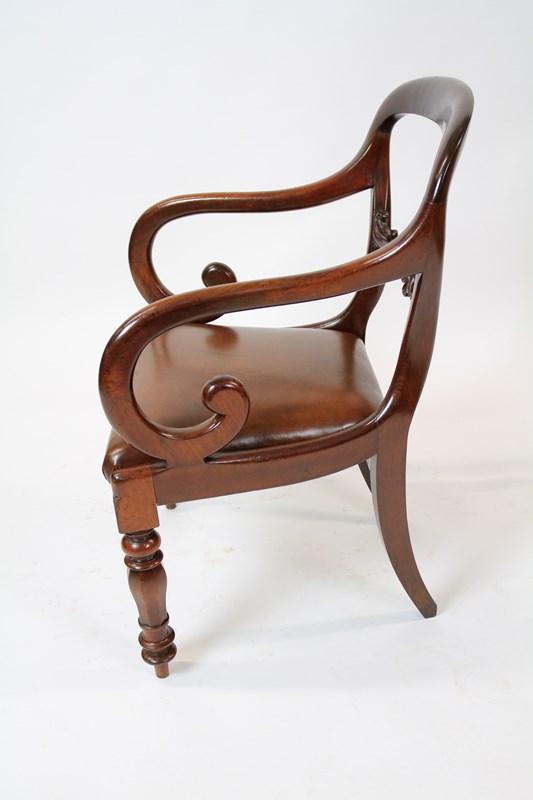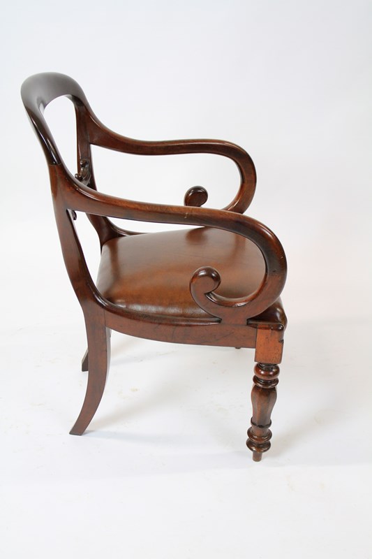 Early Victorian Mahogany & Leather Desk Elbow Chair