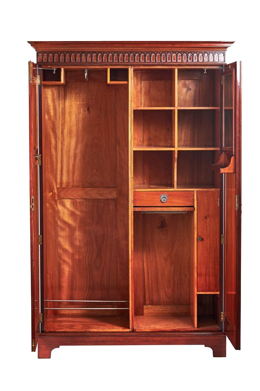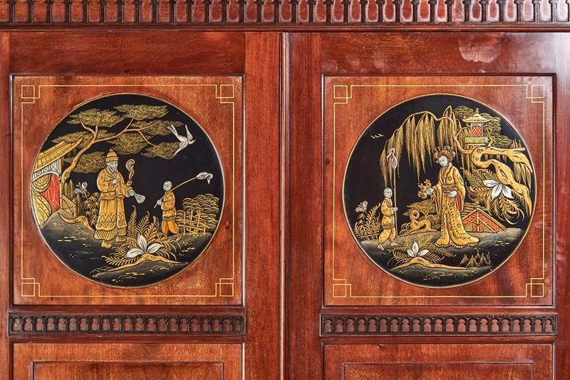 Edwardian Mahogany & Chinoiserie Decorated Wardrobe