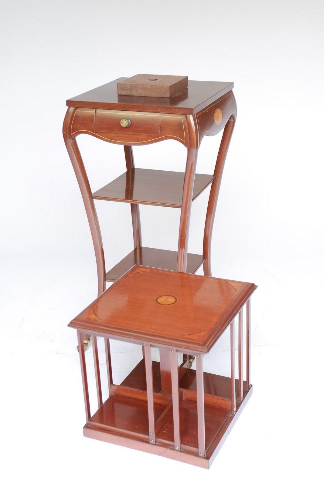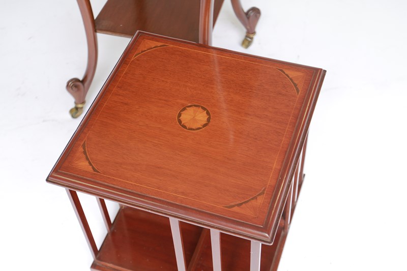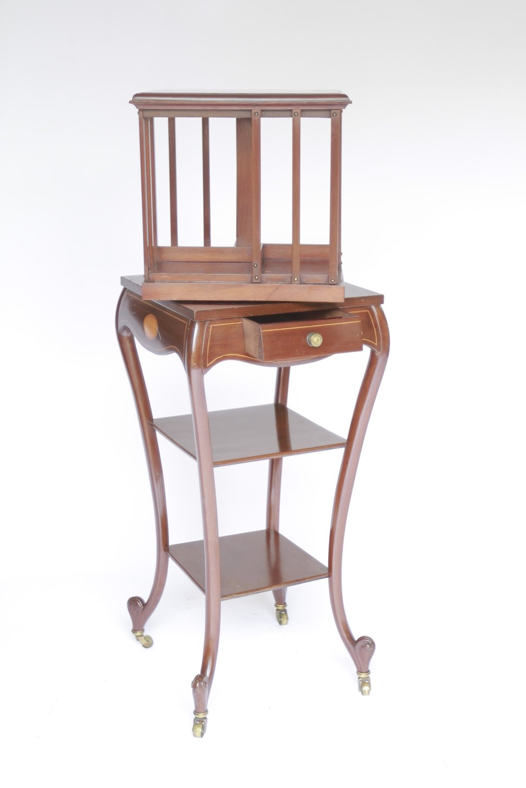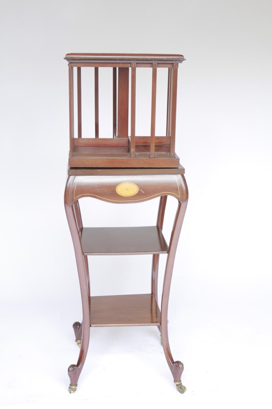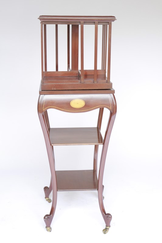 Edwardian Mahogany inlaid Revolving bookcase on stand