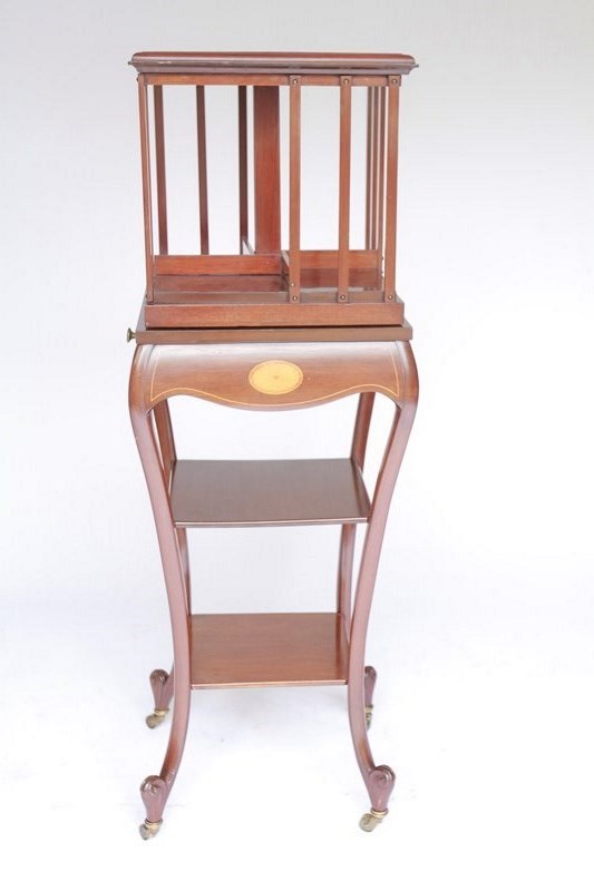 Edwardian Mahogany Inlaid Revolving Bookcase On Stand