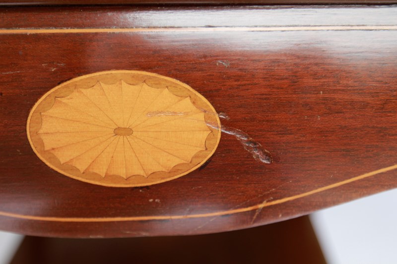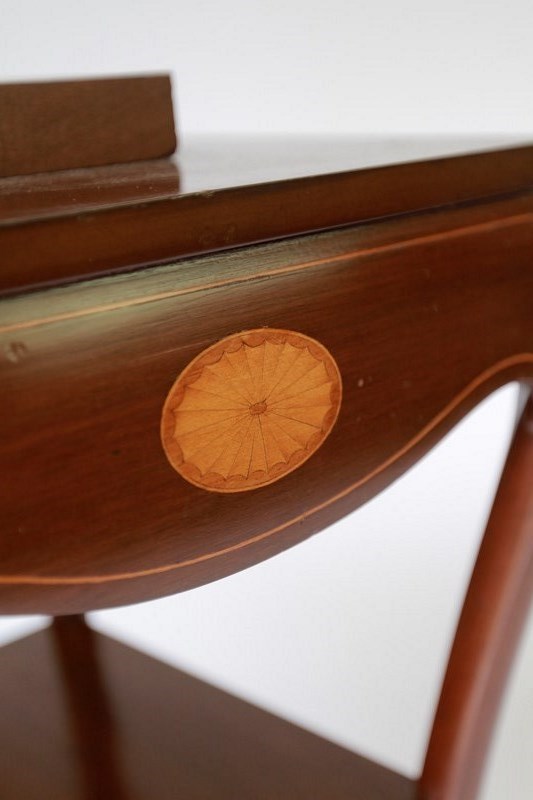 Shaped 2 tier base with single drawer at front. oval fan inlaid & boxwood line detail