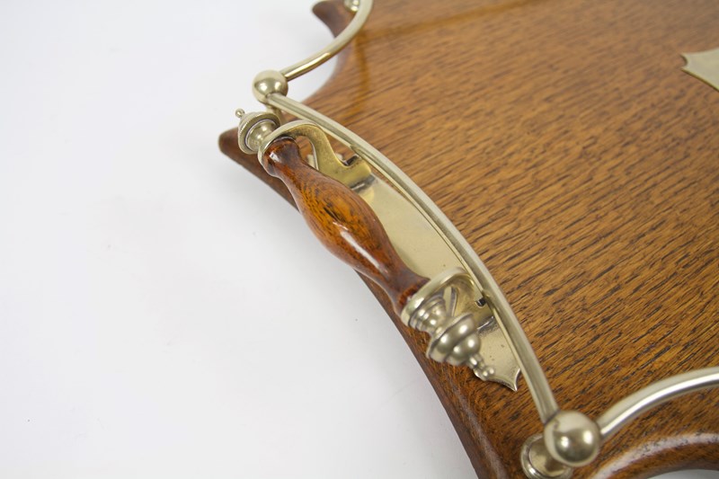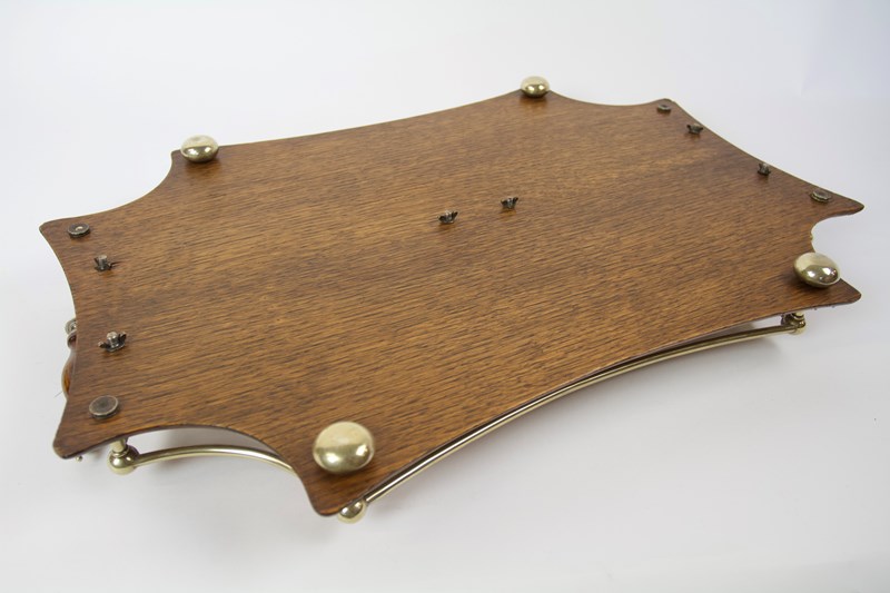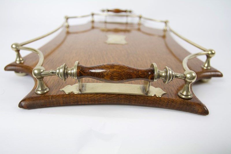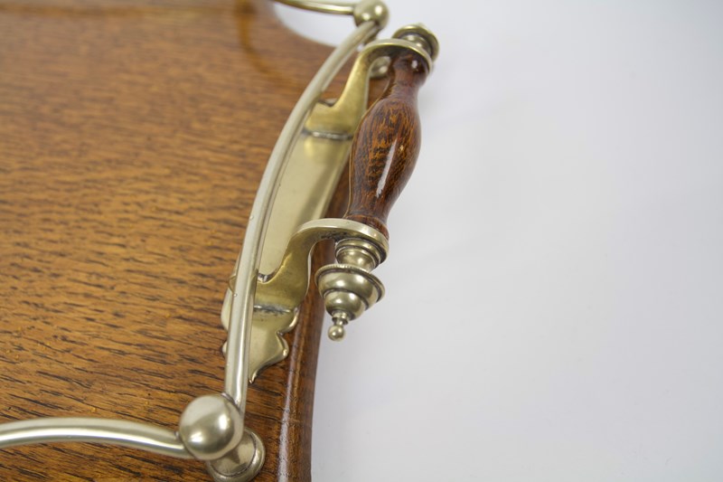 Fine Antique Oak & silver plated Gallery Serving Tray circa 1910