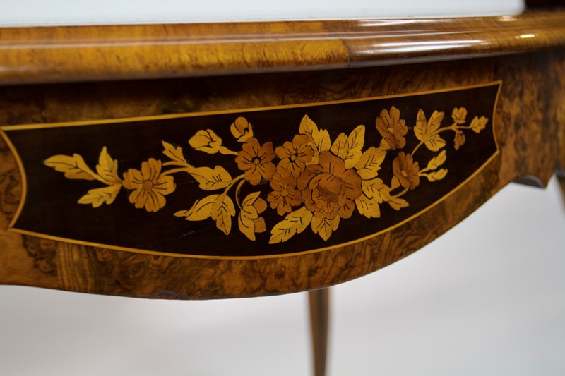 Shaped Burr Walnut Frieze, with Marquetry inlay panels