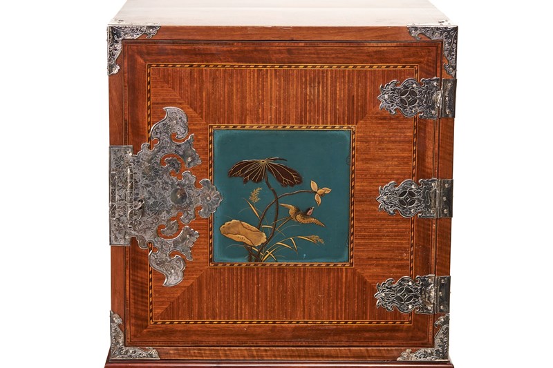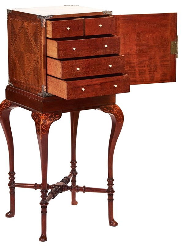 Fine Gillows, Walnut & Kingwood inlaid fitted drawer cabinet on stand circa 1920s
