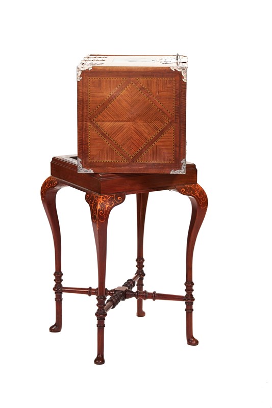 Two sides & top, with diamond shaped Kingwood veneer, & chequer strung inlays,