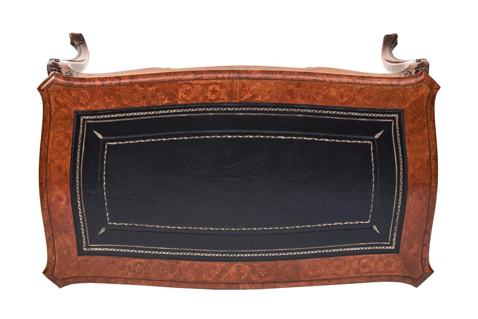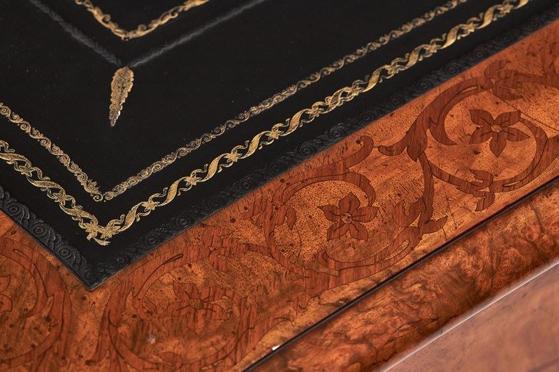 Fine Victorian Walnut Inlaid Bureau Plat / Writing table Stamped Holland & Sons