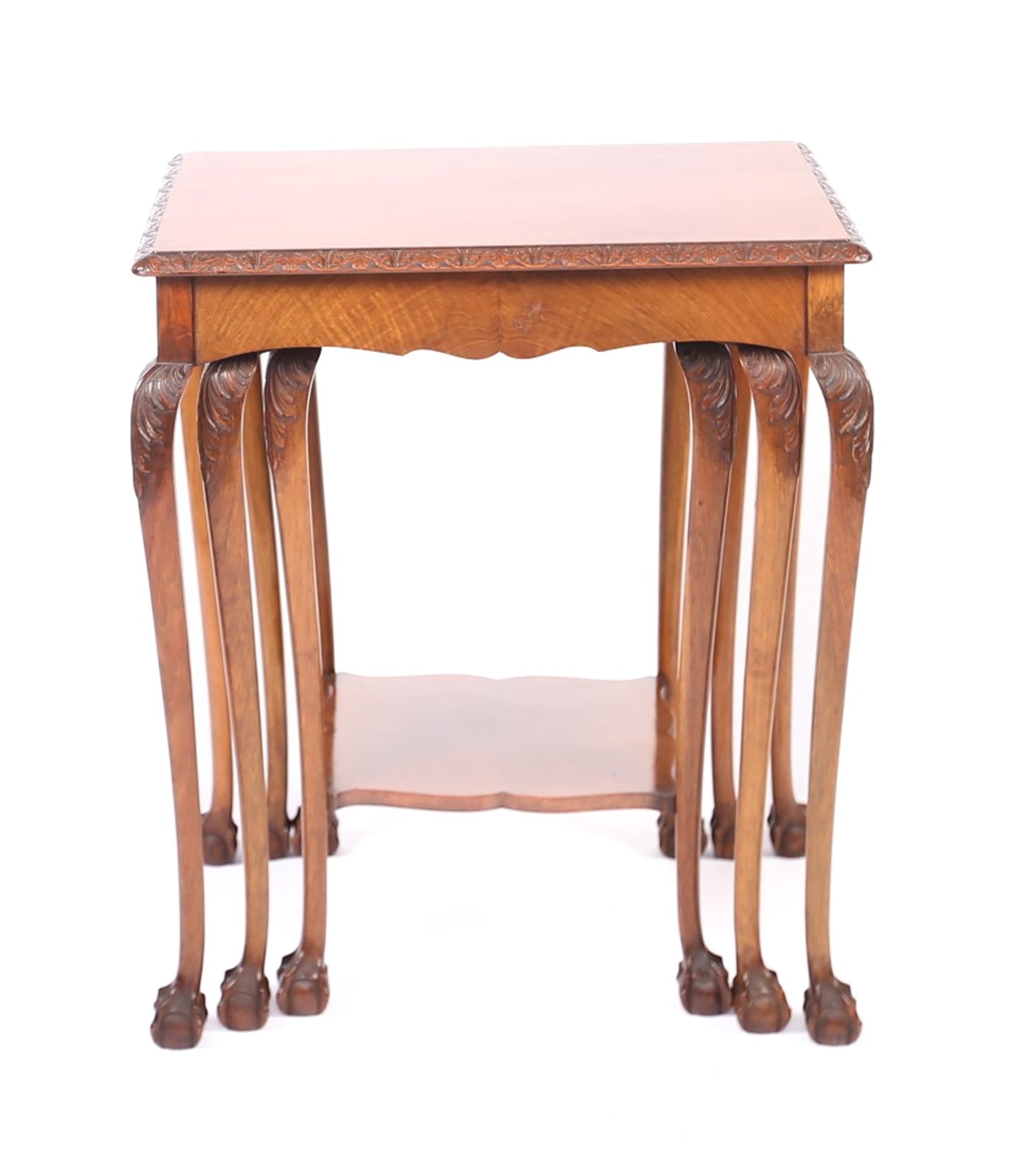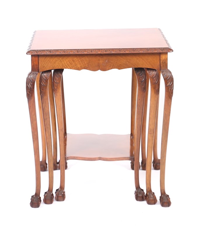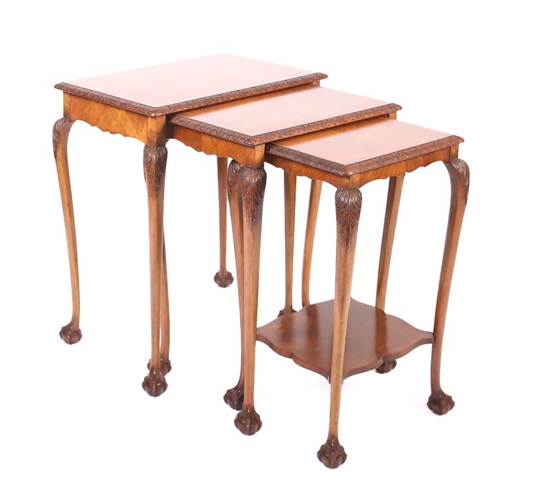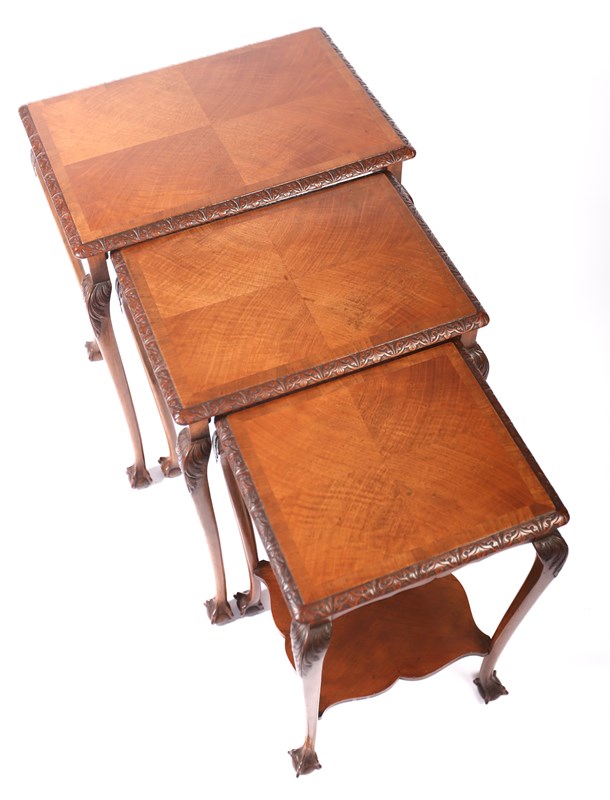 Fine Nest of 3 Walnut & Carved Nest of tables
