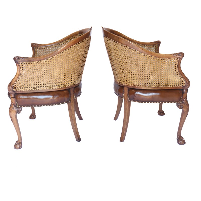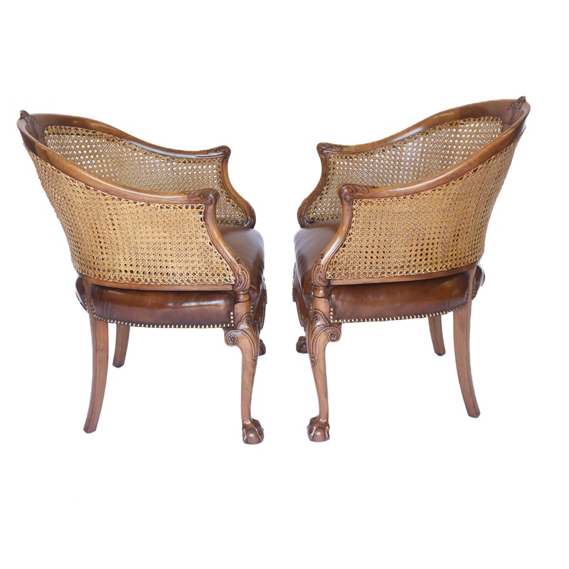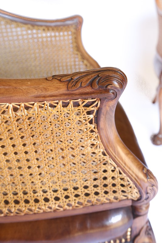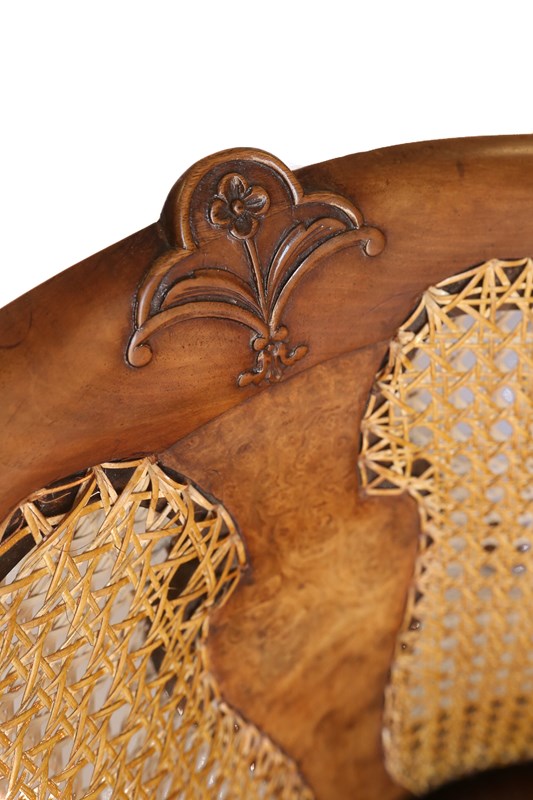 Fine Pair Walnut & Carved Bergere Tub Shaped Chair